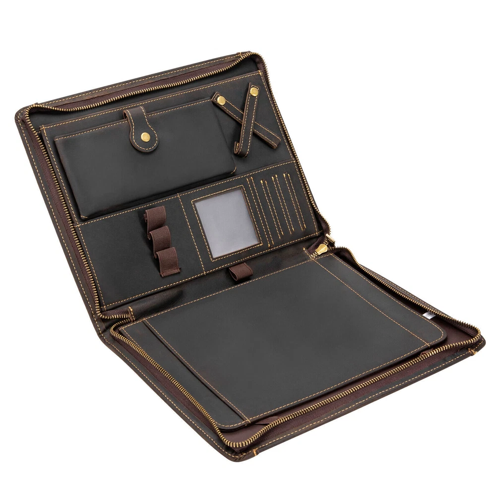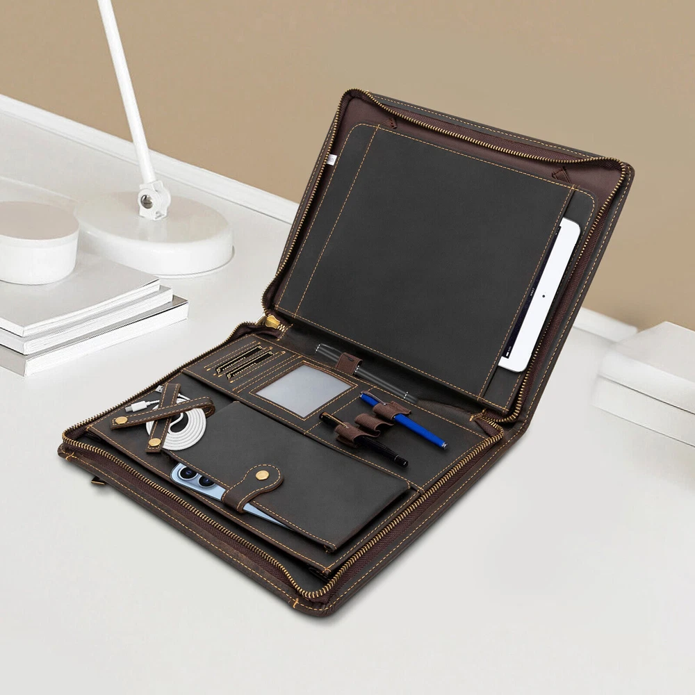 Specification Style: Modern Color: Brown Material: Cowhide Leather, Alloy, Plastic Cement Shape: Rectangular Compatible Devices: 24cm/9.7inch Tablets/Laptops Net Weight: 0.67kg/1.4lbs Gross Weight: 0.8kg/1.7lbs Package Size: 31*25*4cm/12*9*1.5inch Product Size: 29.5*23*4cm/11.41*0.87*1.57inch Package Included 1* Leather Padfolio Folder Business Top-layer Leather Portfolio Zippered Notebook Binder Office Organizer Description Meetings, interviews, or classroom presentations require a lot of preparation, so we need a practical bag to organize objects. This product provides you with a great choice. Made of top-layer cowhide leather, it is very durable. And multiple compartments can facilitate the classified storage of office files, mobile phones, pens, data cables, and more. It not only makes you more confident but also gives others a good impression. Key Features Preferred Material: Made of top-layer cowhide leather, it has high toughness, good air permeability, and is comfortable to touch, allowing you to use it for a long time. Due to the natural property of leather, the appearance may change to a more mature and aged look.This aging of the leather not only makes it more flexible but also strengthens the material. You can slowly enjoy the change of texture! A Good Assistant: It can organize letters, notebooks, important documents, paper, printouts, flyers, commercial credit cards, photos, etc, and protect precious electronic products from collisions and scratches. Sorted Storage: A tablet holder with four elastic bands can accommodate 9.7-inch tablets/laptops and provide excellent fixation. Two large pockets can be used to store receipts, checkbooks, tickets, or passports. Four highly elastic pen slots can accommodate various sizes of pens, pencils, and markers. A phone bag with a buckle can be used to store your phone. The headphone holder can be used to store headphones, USB cables, and charging cables. And four card holders can store your business cards, ID cards, or credit cards. High-end Appearance: The natural texture of leather, classic brown, metal zippers, and rounded edges make the product look simple but luxurious, which can showcase your extraordinary fashion taste. Portable: It is lightweight (1.4 lbs), compact ( 11.41*0.87*1.57 inches ), and can be conveniently placed in a suitcase or briefcase, making it an excellent companion for business travel. It can also serve as a substitute for a briefcase, laptop bag, and backpack. Ideal Gift Choice: Good practicality makes it an ideal gift for colleagues, friends, or recent college graduates on Father's Day, Mother's Day, birthdays, Valentine's Day, Christmas, and other occasions. Exquisite Workmanship: Fine and neat stitching can make the product look more exquisite and extend its service life. Guaranteed Customer Service: We aim to provide quality products and services. If you have problems, please feel free to contact us. We will reply and solve the problem for you as soon as possible. Details Durable Zippers: The high-quality alloy zippers are wear-resistant, corrosion-resistant, waterproof , and can resist impact, deformation, and fracture, which can extend the service life of the product. And you can zip up the product to prevent losing items. Clear Card Window: The clear card window made of plastic cement allows you to easily see the cards inside for easy access. Application It is suitable for students or professionals to store office supplies for presentations, meetings, interviews, or daily management tasks. Specification Style Modern Color Brown Material Cowhide Leather, Alloy, Plastic Cement Shape Rectangular Compatible Devices 24cm/9.7inch Tablets/Laptops Net Weight 0.67kg/1.4lbs Gross Weight 0.8kg/1.7lbs Package Size 31*25*4cm/12*9*1.5inch Product Size 29.5*23*4cm/11.41*0.87*1.57inch Package Included 1* Leather Padfolio Folder Notes Please avoid immersing the product in water or exposing it to water for extended periods. Please avoid using sharp objects to rub the product. The top-layer cowhide has a natural texture and is prone to wrinkles, marks, spots, and creases, which is a normal phenomenon. You can repeatedly rub with your fingers, and use a dry cloth, sponge, hand cream, or leather care oil to make scratches fade or disappear. Please confirm the size of the tablet or laptop before ordering. If unsure, please measure it in time. Please allow the slight color difference caused by the shooting light and 1-3cm error due to manual measurement, and make sure you do not mind before ordering. Payment Delivery details Terms of sales About us Contact us Payment We accept ebay payment 。 Fees such as import duties, taxes are not included in the item price or shipping costs. These charges are the buyer's responsibility. Delivery details Shipping: 2-9 working days to: USA Terms of sales We maintain high standards of excellence and strive for hundred percent customer satisfaction. Feedback is very important to us. We hope that you contact us immediately before you give neutral or negative feedback, so that we can address your concerns. It is impossible to address issues if we do not know about them! About us Your satis faction is our ultimate goal. We work hard to earn your trust and future business. Our certified technicians have tested each item before shipping. The unit comes with 1 year limited warranty on all manufacturing defects. a) If you receive a defective item, you may return it or ask for a discount. Please contact us within 14 days after you receive the package. b) What you returned must be intact and in its original packaging as re? u. Customer is responsible for shipping costs of the returned item. c) We will cover the cost of shipping back t with the shipping rate indicated in the registration page. We will send you a new unit or refund the full payment you paid. Thank you. Contact us Business Hour Business Hour: Monday To Friday: 8:30 AM to 5:00 PM (Beijing China time) Due to time zones, our reply to your 
