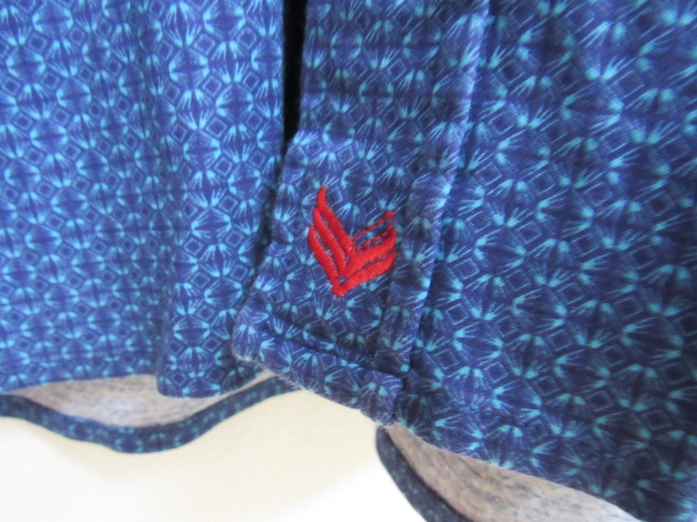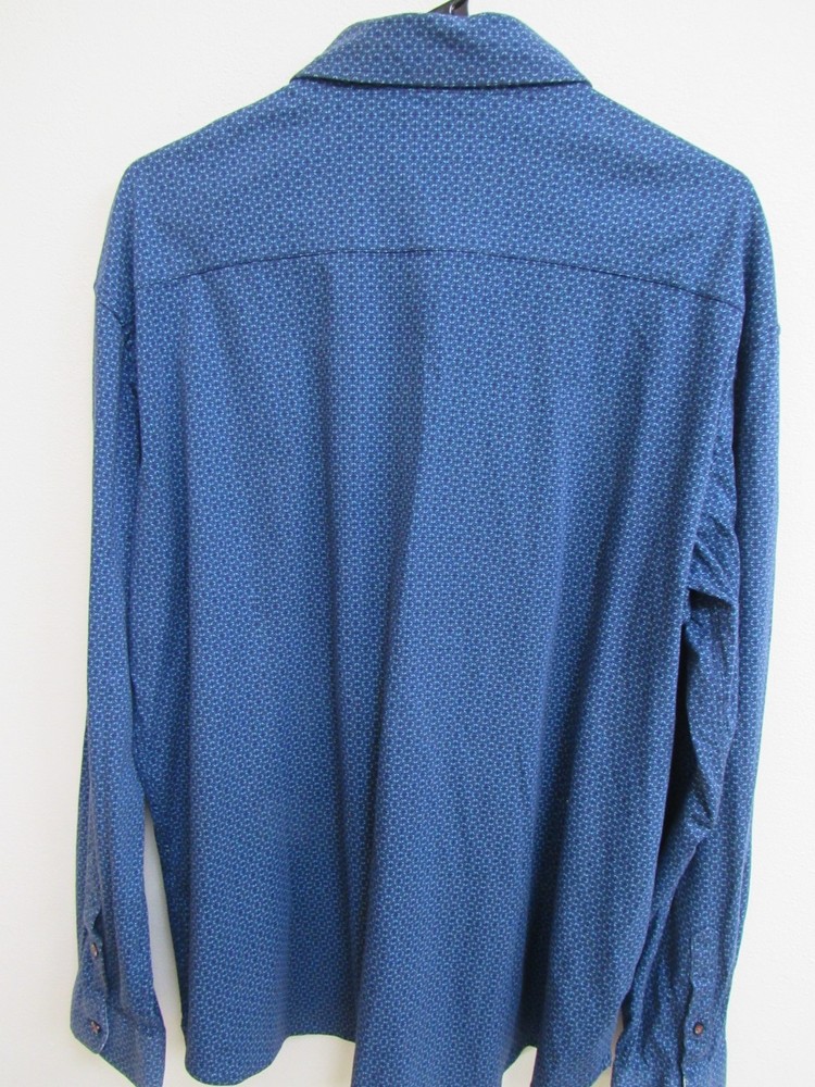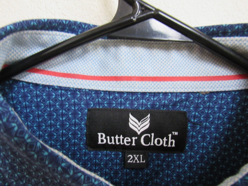 Butter Cloth blue geometric AOP long sleeve button-up shirt. Size 2XL. 25.5" armpit to armpit and 31.5" top of collar to bottom of hem. Very nice condition.