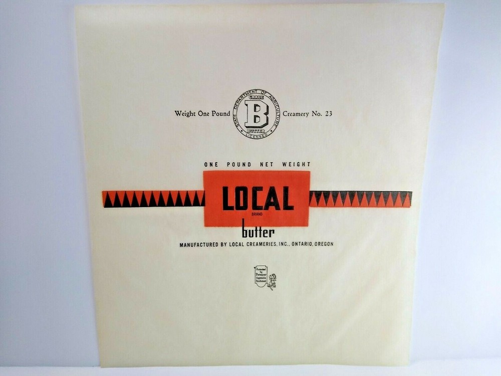 Butter Wrapper Local Brand Red Black Ontario, Oregon One Pound Vintage Original Circa 1940's NOS Original vintage circa 1940's era unused butter wrapper. Excellent condition 8.75" x 9.75". More vintage wrappers in our store. SHIPPING Buyer pays shipping and handling. Bundle and save by using cart and making single payment. International buyers are responsible for any import fees/taxes. ABOUT US Seller of vintage collectibles, gifts, advertising, artwork, original pinball flyers, vinyl records, video arcade flyers, pinball machine translites, game manuals, score cards, magazines, antique Halloween and holiday postcards, Christmas items, super hero memorabilia, horror themed art. Bundle and save by using the cart. Please review all the photos. Thank you.
