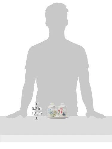 The most popular casual dinnerware collection in America, Butterfly Meadow is truly a contemporary mix and match classic. Inspired by the artistry of Louise Le Luyer, there are many delightful pattern varriations to choose from, each offering an exquisite array of butterflies, blooms and other wonders of nature, all rendered in a soft color palette. Crafted of the finest porcelain, Butterfly Meadow is the perfect choice for today. All of the dinnerware is safe for use in the dishwasher. Designed for chip-resistant durability, Butterfly Meadow will take a cherished place in your home for many years and offers the opportunity to expand your collection with the incredible range of dining, decor and gift giving choices available. Best of all, this versatile, stylish and fun collection is created by , America's first name in home entertaining. Known around the world for offering a unique combination of design, artistry and superior quality for over 125 years. Pretty as a picture! Your Butterfly Meadow collection is not complete without this 7 piece condiment server. Use it for sauces, dressings, mustards, honeys, jams and jellies. Giftboxed set includes 8.25" scalloped tray with 2 condiment jars, 2 slotted lids and 2 porcelain spoons. Made of chip-resistant white porcelain Microwave and dishwasher safe Florals and butterflies in exquisite colors adorn each scalloped piece Giftboxed 7 piece set includes an 8.25" tray with 2 condiment jars, 2 lids and 2 spoons