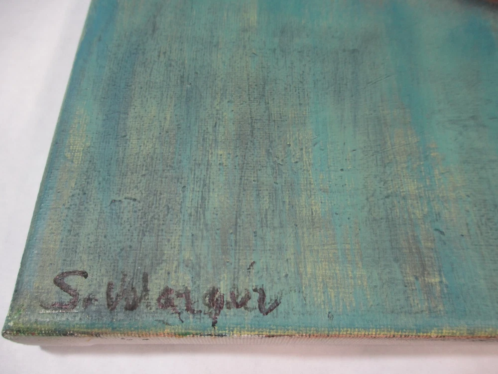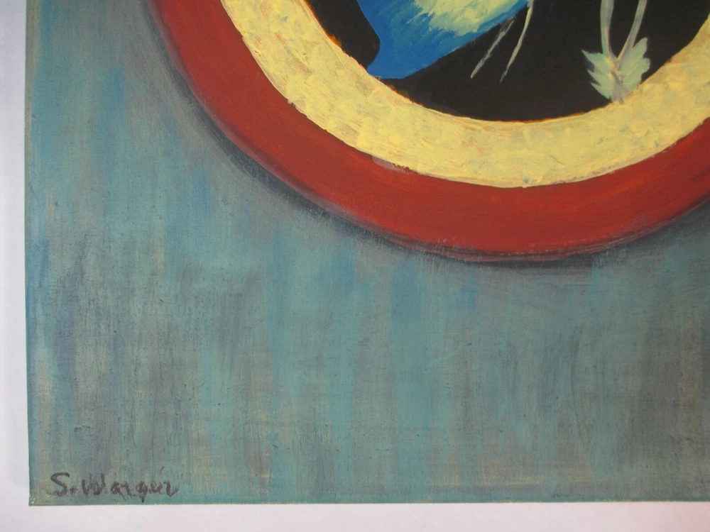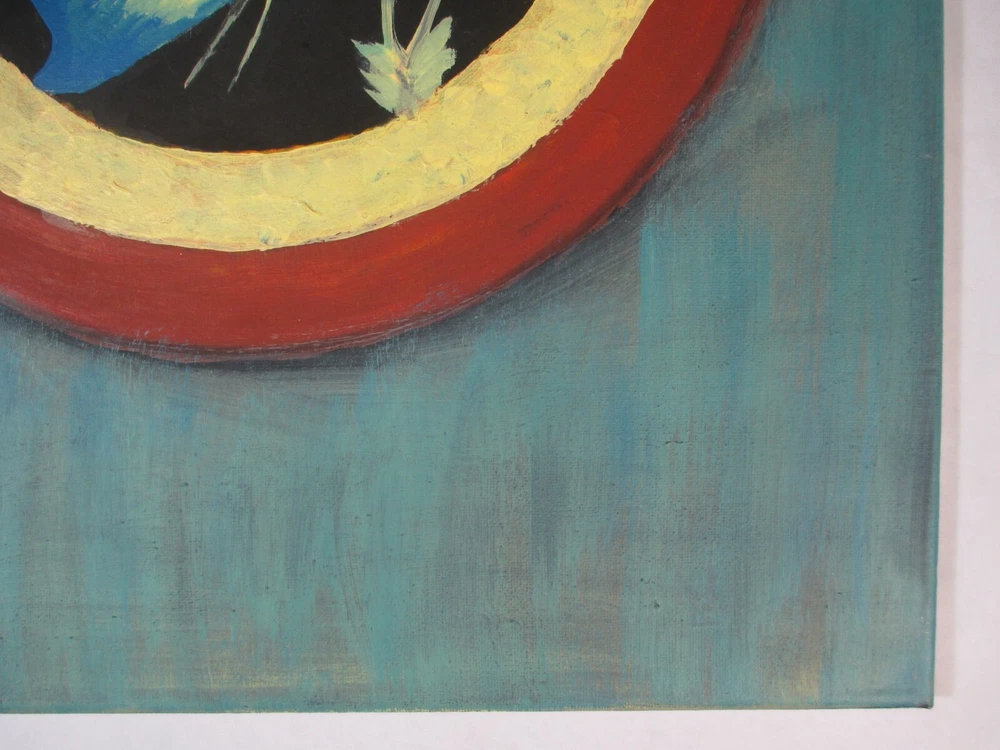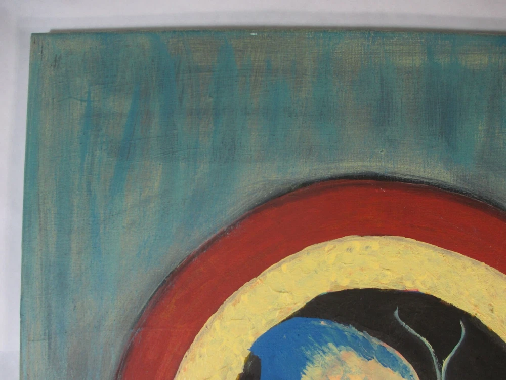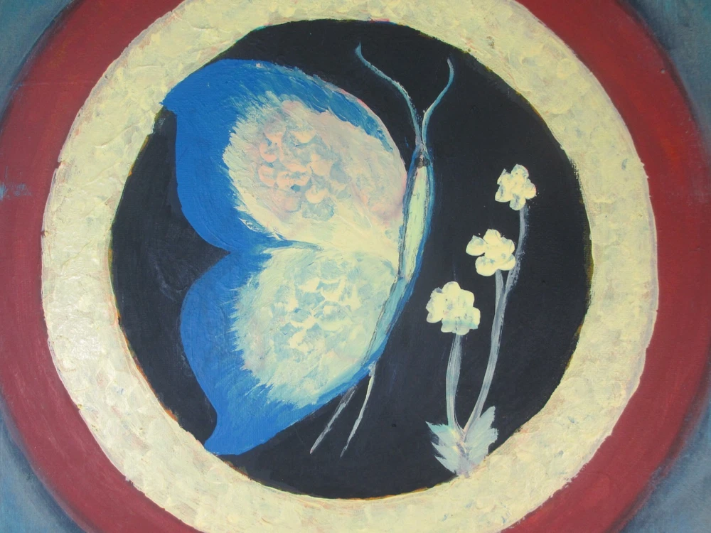 Blue Butterfly with Flowers & Unique Design Abstract Art Hand Painting 16x20 Butterfly with three flowers with different color rings around it. Artist S. Velazquez