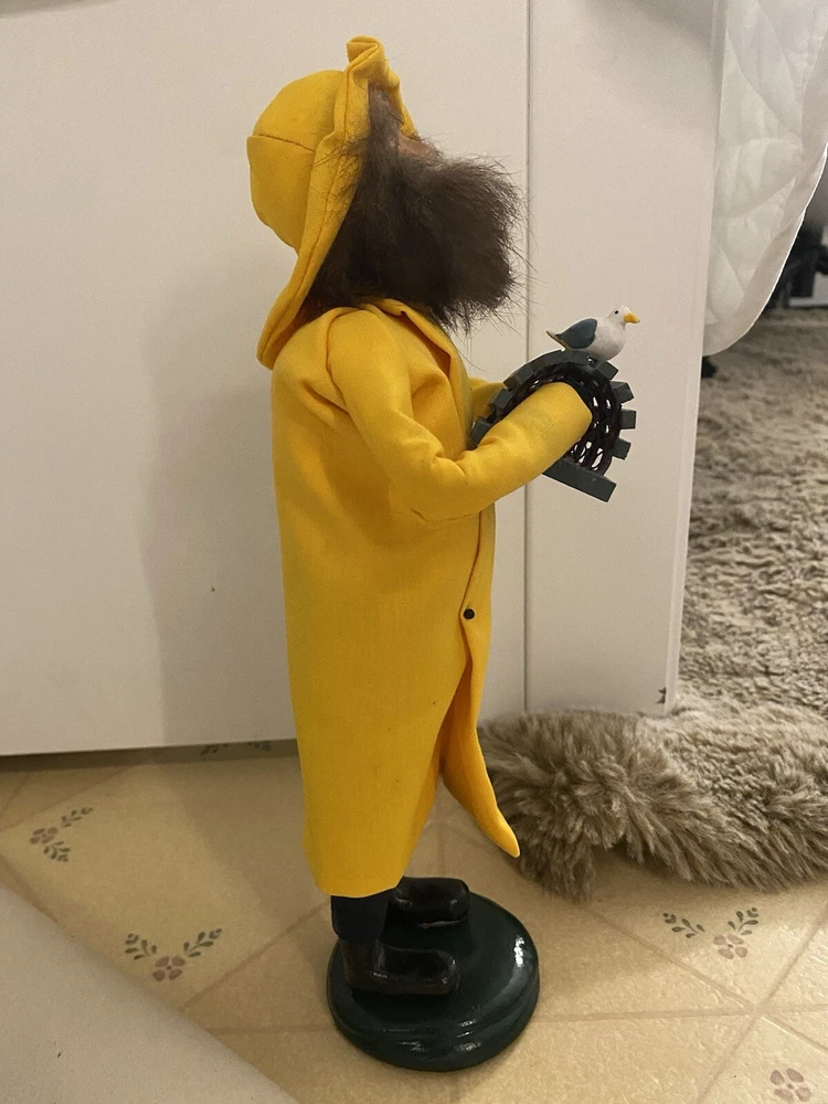 This Byers Choice doll is a charming addition to any collection. The 1999 Nautical Carolers Lobster Fisherman doll features a yellow lobster trap and a seagull, perfect for all occasions. Handmade with mixed materials, this doll was manufactured in the United States and is a unique piece from the 1990-1999 time period. The brand, Byers Choice, is well-known for their quality collectibles and this doll is no exception. Add it to your holiday or seasonal collection today.