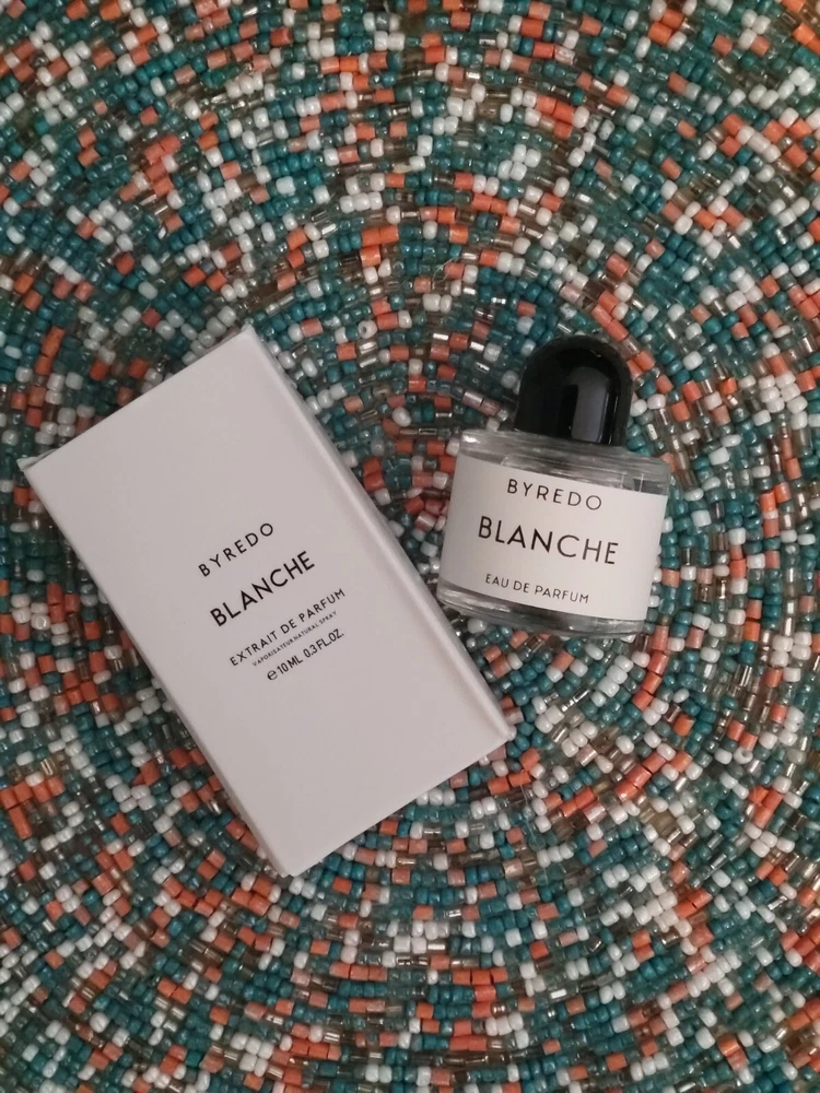 Byredo Blanche parfum 10 ml 0.30 oz Women's Perfume MINI Splash DABBER Fragrance MINI Splash 0.25oz 7.5ml Travel Size Women's Perfume NEW IN BOX, great for car purse luggage travel! MINIATURE DABBER What does Byredo Blanche smell like? This floral aldehyde fragrance has a blend of rose, pink pepper, aklehydes, peony, sandalwood, and musk.
