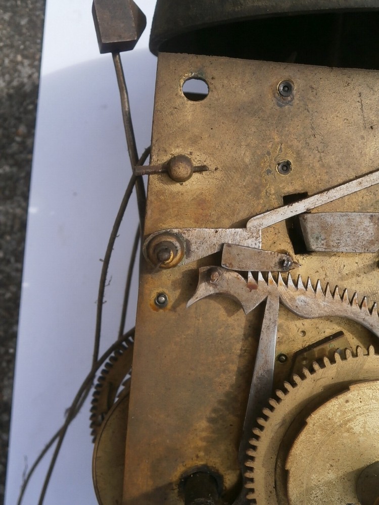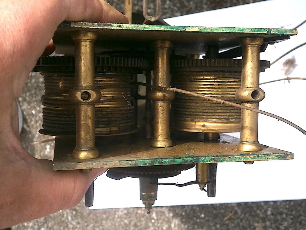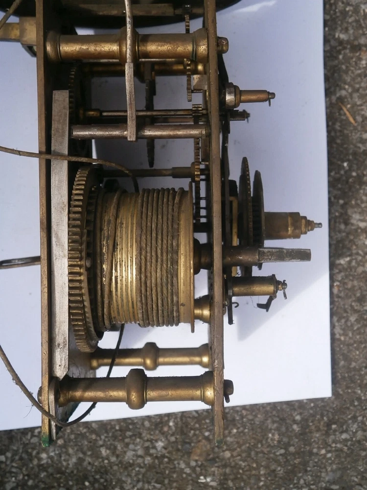 SOLD FOR PARTS OR REPAIR C1800 good 8 day 5 PILLAR longcase clock movement the distance between the winding squares is 3+1/4 inches the plates are 7 inches tall 4+3/4 inches AS IS IN THE PHOTOS PLEASE SEE PHOTOS as you see it in the photos IN NEED OF RESTORATION TICKS AND STRIKES WITH PRESSURE ON THE GREAT WHEELS SOLD AS IS IN NEED OF RESTORATION ' POST UK 20 GBP USA AND EUROPE 95 GBP