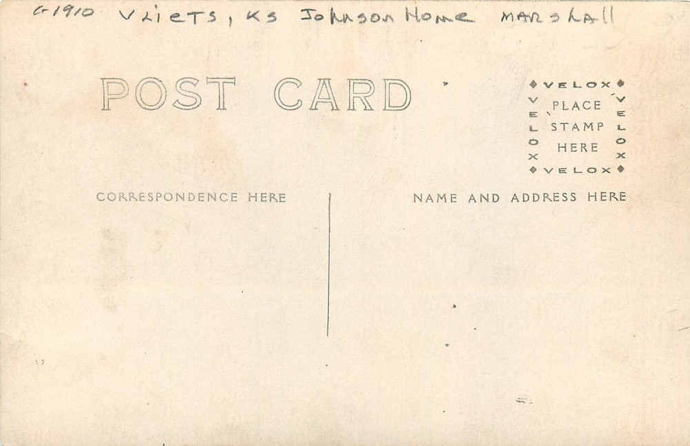 C-1910 Vliet's Kansas Johnson Residence Marshall Postcard RPPC 25-81