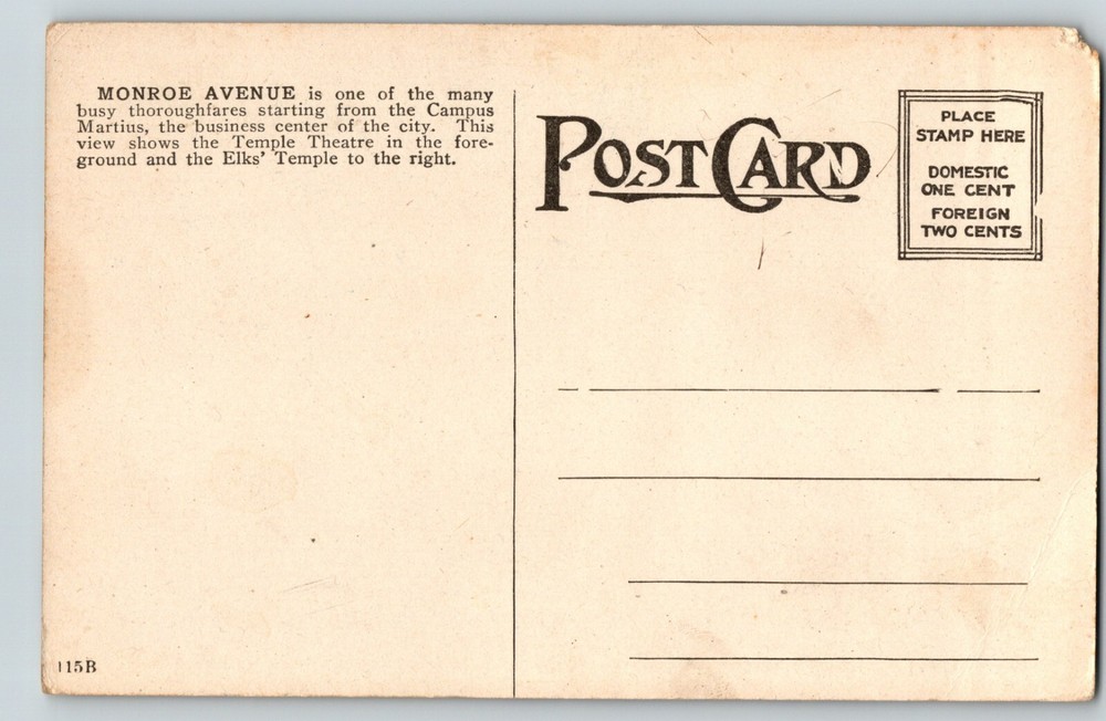 You are buying a Vintage " C1920 Monroe Avenue Temple Theatre Vaudeville Elks Temple Detroit MI Postcard . " In stock, Usually Ships Within 24 hours! 100% Satisfaction Guaranteed! If you have any problems with this purchase, please contact me before leaving feedback, and I will do my absolute best to make you satisfied. Check all my other listings in my store. RETIREDWITHBOOKS. Thank you! Listing and template services provided by inkFrog
