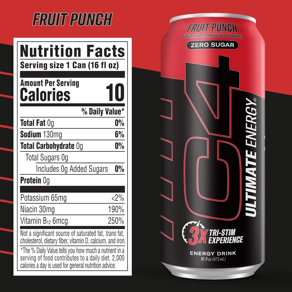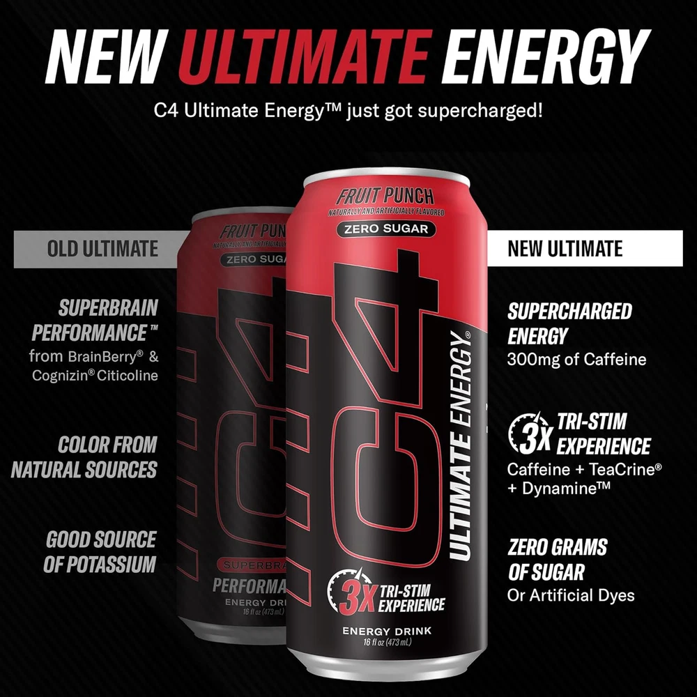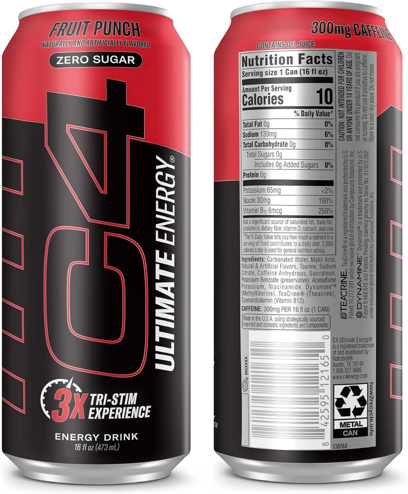 Store New Arrivals Add to Favorite View Feedback Contact C4 Ultimate | Pre Workout Sugar Free Energy Drink | Tri-Stim Experience with 300Mg Caffeine + Teacrine + Dynamine | Fruit Punch | 16Oz (Pack of 12) Description Item model number 111125 Number of Items 12 Country of Origin USA Flavor Name Fruit Punch Package Information Can Flavor Fruit Punch Item Form Liquid Package Dimensions 10.98 x 8.03 x 6.26 inches; 1 Pounds Size 16 Fl Oz (Pack of 12) [C4 SUGAR-FREE ENERGY DRINK] America's #1 Selling Pre-Workout Brand has been trusted since 2011 with over 2 billion servings sold* [TRI-STIM EXPERIENCE] - A triple threat of caffeine, TeaCrine, and Dynamine makes C4 Ultimate Energy hit like it’s the first time, every time. [SUPERCHARGED ENERGY] - Each can of C4 Ultimate Energy is formulated with 300mg caffeine for a next-level, long-lasting energy experience. [BOLD FLAVORS] Available in multiple delicious flavors and ZERO grams of sugar, artificial colors, dyes, or flavors. [CLINICALLY STUDIED INGREDIENTS] - Dynamine is clinically studied with caffeine and TeaCrine for longer lasting energy. C4 Ultimate Energy is NOT your traditional energy drink. It’s the ultimate, highly amped, supercharged, energy experience! Each can hits you with 300mg caffeine, TeaCrine®, and Dynamine™ for a tri-stim energy source that hits like it’s the first time, every time. C4 Ultimate Energy packs bold flavor with ZERO grams of sugar, artificial colors, dyes, or flavors. For the ultimate tri-stim experience, get supercharged with C4 Ultimate Energy™! Packaging May Vary* ABOUT US We offer the best prices around on high quality products. Our E-store includes media such as books, movies, music and games while offering electronics, toys, sporting apparel, clothing, tools, general home, garden items and more. SHIPPING We are always working hard to ensure your package arrives as soon as possible. Please understand that some factors like weather, high postal traffic, and the performance of shipping companies are outside of our control. We offer free shipping to the lower 48 states and ship within 2 business days of payment, usually sooner. We do not accept P.O. Boxes. Please provide a physical address. For shipping outside of the continental USA, we only use eBay's Global Shipping Program.The item is shipped to KY and then sent to the rest of the world. International customers are responsible for all duties and taxes. Continue to check out in order to calculate costs for shipping the item to your country. Messages regarding eBay's Global Shipping Program MUST be directed at eBay EXCLUSIVELY. RETURNS We offer a 30-Day Return Policy on items which you are not completely satisfied with. You have the option for a full-refund or an exchange of the item. No returns are available on items shipped outside of the USA. PAYMENT We accept PayPal. CONTACT US This page content is yet to come Please ad us to your favorite seller and visit again later Thank You CUSTOMER SATISFACTION We try our very best to make sure every customer is completely satisfied. If there's a problem, message us! We're happy to help. WE ACCEPT Copyright © 2021 AutoDS. | All Rights Reserved