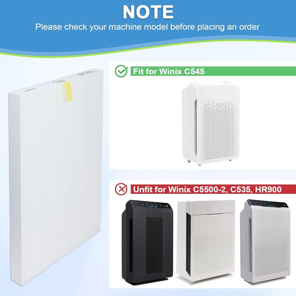 Store New Arrivals Add to Favorite View Feedback Contact Fast deliveries to the customer's home Quality customer service John Make the customers happy! C545 Replacement Filter S Compatible with Winix C545 Air Purifier, Replaces 1712-0096-00 and 2522-0058-00, 2 Pack C545 HEPA Filter and 8 Activated Carbon Filters for Winix C545 Description Perfect Compatibility: Our Carbon Filter for Winix C545 is meticulously crafted to perfectly fit the C545 Air Purifier for Winix, ensuring a seamless match with its specifications (Part number 1712-0096-00 and 2522-0058-00). Please verify your purifier model prior to making a purchase Economical Solution: Our Air Purifier filter replacement package comprises 2 H13 True HEPA Filter for Winix C545 and 8 Activated Carbon Foam, all securely sealed in protective wrapping. This budget-friendly option delivers exceptionally efficient filtration Effective True HEPA Filtration: Our for Winix 1712-0096-00 replacement filter, which boasts the remarkable capability to efficiently capture an impressive 99.97% of airborne particles as tiny as 0.3 microns. By significantly improving your home's air quality, this advanced filtration system ensures a healthier and more refreshing environment for you and your loved ones Superior Filtration for Fresh Air: 2522-0058-00 filter replacement for Winix C545 integrates advanced Carbon Foam, which excels at efficiently removing unpleasant odors and noxious gases. This replacement filter for Winix C545 serves as your ultimate partner in preserving a consistently odor-free and revitalizing indoor ambiance Premium & User-Friendly: Our air purifier filter replacement for Winix C545, crafted from premium non-woven fabric with advanced energy-saving technology, ensures optimal filtration and longevity. The convenient pull tab ensures easy installation and removal without tools. For best performance, it is suggested to replace the filter every 6-8 months and the Activated Carbon Foam every 3 months Product Description Item model number 1712-0096-00 2522-0058-00 Part Number 1712-0096-00 Batteries Required? No Number of Items 1 Unit Count 1.0 Count Product Dimensions 13"L x 11"W x 3"Th Model Info 1712-0096-00 2522-0058-00 Country of Origin China Item Weight 1.8 pounds Batteries Included? No ABOUT US We offer the best prices around on high quality products. Our E-store includes media such as books, movies, music and games while offering electronics, toys, sporting apparel, clothing, tools, general home, garden items and more. SHIPPING We are always working hard to ensure your package arrives as soon as possible. Please understand that some factors like weather, high postal traffic, and the performance of shipping companies are outside of our control. We offer free shipping to the lower 48 states and ship within 2 business days of payment, usually sooner. We do not accept P.O. Boxes. Please provide a physical address. For shipping outside of the continental USA, we only use eBay's Global Shipping Program. The item is shipped to KY and then sent to the rest of the world. International customers are responsible for all duties and taxes. Continue to 'check out' to calculate costs for shipping the item to your country. Messages regarding eBay's Global Shipping Program MUST be directed at eBay EXCLUSIVELY. RETURNS We offer a 30-Day Return Policy on items in which you are not completely satisfied with. You have the option of a full-refund or an exchange of the item. No returns are available on items shipped outside of the USA PAYMENT We accept PayPal. CONTACT US This page content is yet to come Please ad us to your favorite seller and visit again later Thank You CUSTOMER SATISFACTION We try our very best to make sure every customer is completely satisfied. If there's a problem, message us! We're happy to help. WE ACCEPT