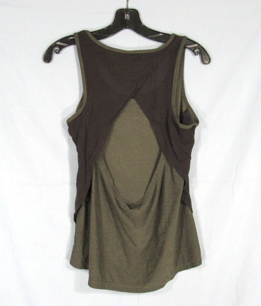 In very gently used condition. Back is sheer mesh and open. Main Body- 88% Polyester, 12% Spandex Contrast Mesh- 95% Rayon, 5% Spandex Measurements: Bust 32", Length 22" We are so thankful for our customers! However, we have thousands of listings, and therefore receive hundreds of messages, every single day. So, if you are asking about a price drop, or a shipping price drop, or asking for extra measurements, or to add additional photos, please allow me to answer you here, No thanks. If your question is not one of those questions, we will be happy to answer you individually. YES...WE DO COMBINE DOMESTIC SHIPPING. Extra jewelry items ship for $2 each (except for large jewelry lots). We will refund the difference as we are mailing out.....we hope you enjoy shopping with us! We encourage you to read the description and check all photos.