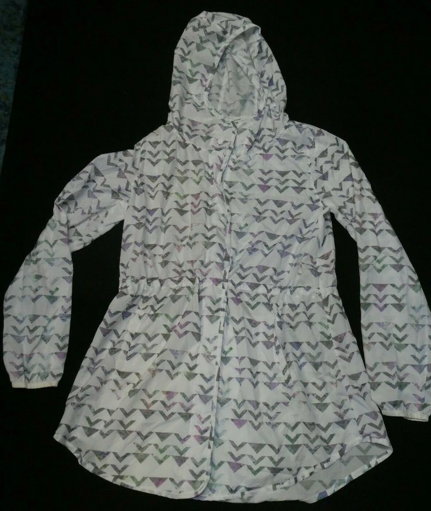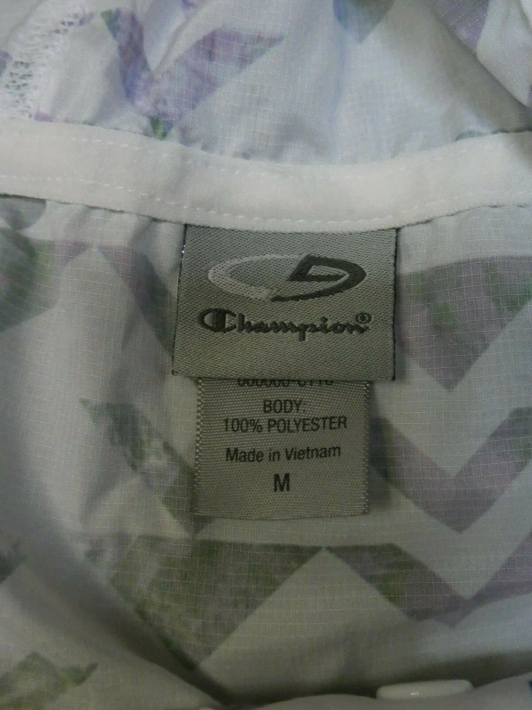 You are bidding on a C9 by Champion women's pink/purple/green/white print full-zip ultralight hoodie windbreaker jacket, size medium. This item is in great condition (no rips, stains, etc. and no signs of wear) and will come to the winning bidder from a smoke-free home. If you are interested in multiple items, I will be happy to combine shipping. Please email with any questions before bidding. Happy bidding! Measurements: armpit to armpit: 20 inches; shoulder to hem: 30 inches. Material composition: 100% polyester. PLEASE NOTE: This item is quite loose-fitting so please check measurements carefully before bidding. w1(21f)