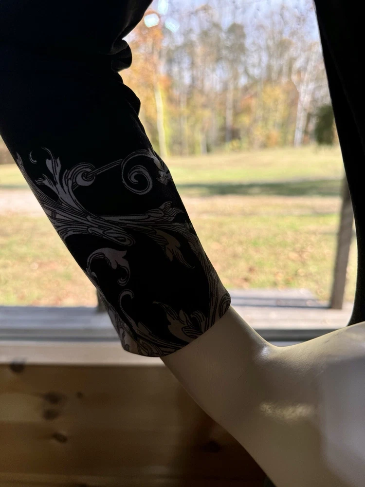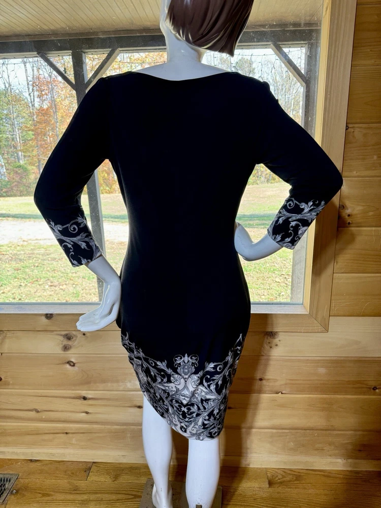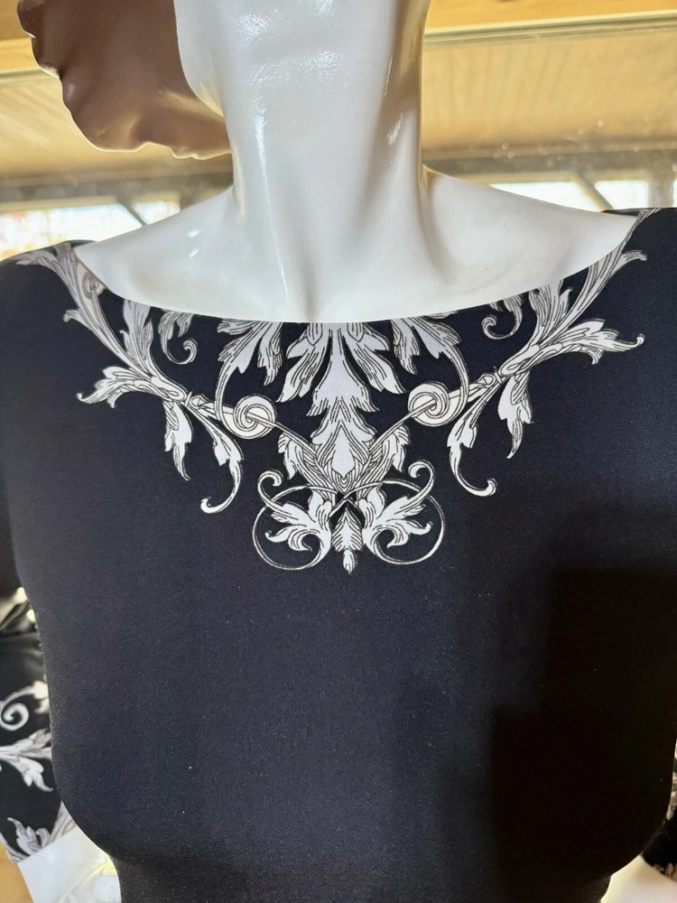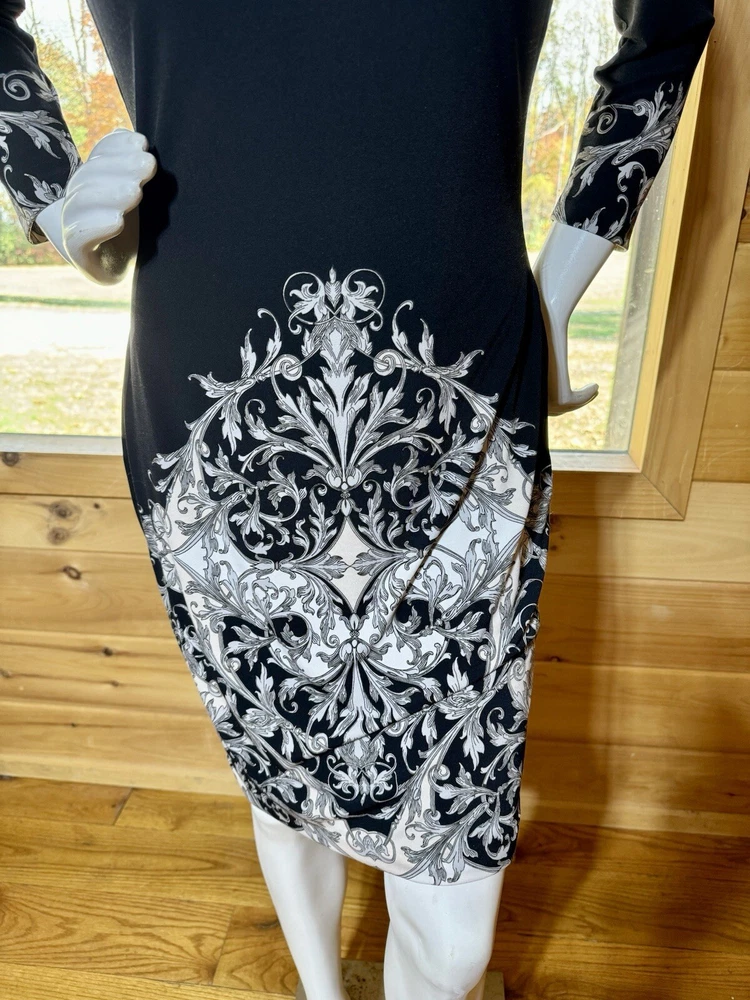 CACHE Black and White Filigree Print Fitted Dress Sz Medium