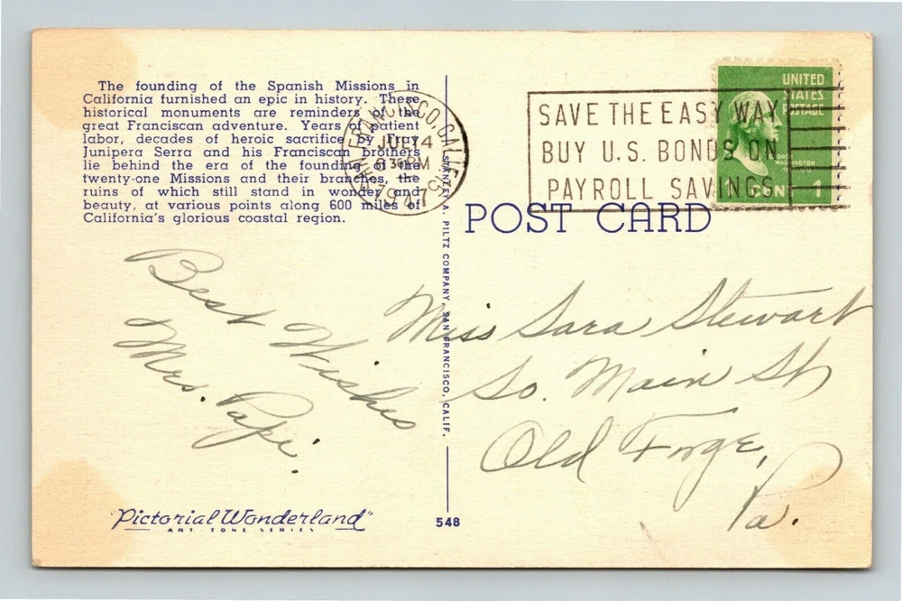 Region: California Continent: North America Type: Linen Postcard Unit of Sale: Single Unit Subject: Cities & Towns Country/Region of Manufacture: United States Original/Licensed Reprint: Original Country: USA Postage Condition: Posted City: California Theme: Cities & Towns Era: Linen