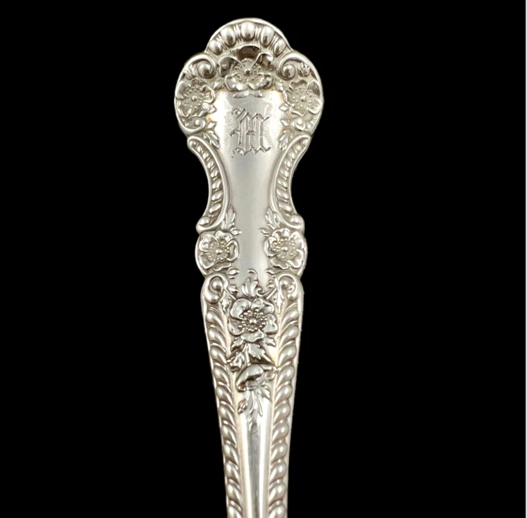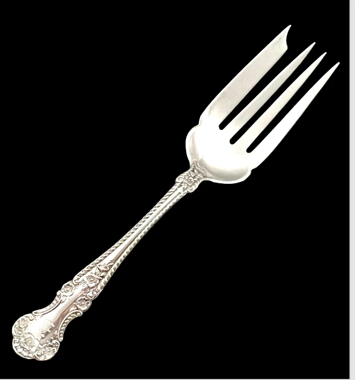 Presented is a Lovely CAMBRIDGE Beef Meat Fork Server by GORHAM SILVER Sterling Silver 6 3/8" length Sterling Silver Beautifully engraved with an Old English "W" Please review the photos as they accurately depict the condition of the piece you will receive. Thanks for stopping by!