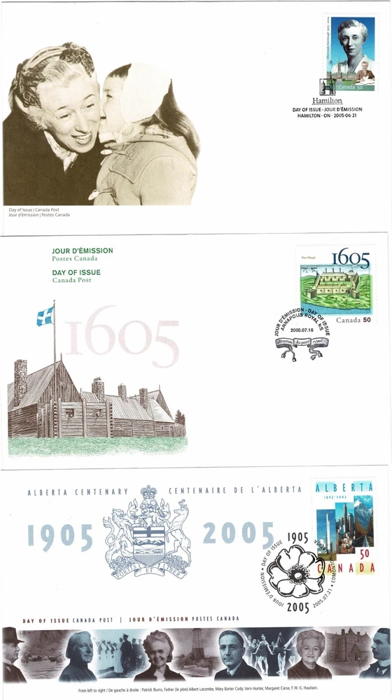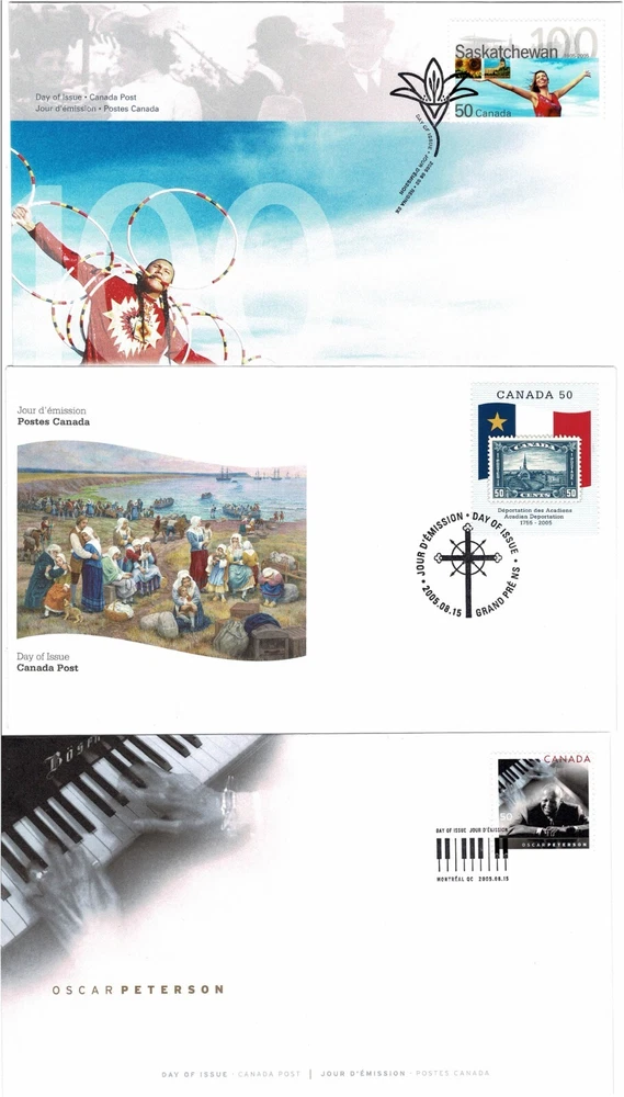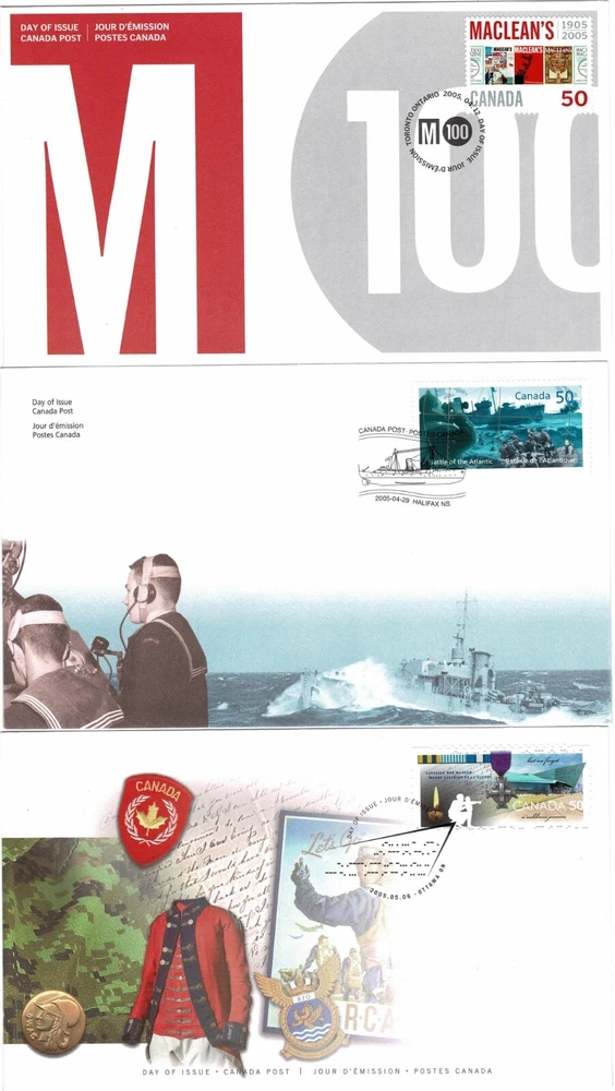 CANADA 2005 A SELECTION OF 16 OFFICIAL CANADA POST FIRST DAY COVERS EACH WITH A FIRST DAY ISSUE PICTORIAL CANCEL INCLUDES:- SG2333 CANADIAN UNIVERSITIES ANNIVERSARIES (4TH SERIES) SG2335 EXPO 2005 INTERNATIONAL EXHIBITION AICHI JAPAN SG2336/2337 DAFFODILS SG2339 150TH ANNIVERSARY OF TD BARK FINANCIAL GROUP SG2349 CENTENARY OF MCLEAN'S MAGAZINE SG2353 60TH ANNIVERSARY OF BATTLE OF THE ATLANTIC SG2354 OPENING OF THE NEW CANADIAN WAR MUSEUM BUILDING OTTAWA SG2358 BIRTH CENTENARY OF ELLEN FAIRCLOUGH (FIRST WOMAN FEDERAL CABINET MINISTER) SG2361 FRENCH SETTLEMENT IN NORTH AMERICA (2ND ISSUE) 400TH ANNIVERSARY OF FOUNDING OF PORT-ROYAL, NOVA SCOTIA SG2362 CENTENARY OF ALBERTA PROVINCE SG2363 CENTENARY OF SASKATCHEWAN SG2364 250TH ANNIVERSARY OF DEPORTATION OF FRENCH SETTLERS FROM ACADIA (NOVA SCOTIA) TO BRISTISH COLONIES OF NORTH AMERICA SG2365 80TH BIRTHDAY OF OSCAR PETERSON (JAZZ COMPOSER AND MUSICIAN) SG2367 50TH ANNIVERSARY OF MASS POLIO VACCINATION IN CANADA SG2375 CHRISTMAS (1ST ISSUE) SG2376/2378 CHRISTMAS (2NSD ISSUE) DUE TO THE THICKNESS OF THIS LITTLE PILE IT WILL HAVE TO GO AS LARGE LETTER HENCE POSTAGE RATES QUOTED I AM NOT WILLING TO SPLIT AND SELL ONE OR TWO SO PLEASE DON'T ASK The scan is of the actual item you will receive Many thanks for choosing to purchase from us ~ we try to describe our items as accurately as possible but if you are disappointed when your purchase arrives then please contact us and we will try to resolve any issues. POSTAGE & PACKING We are always happy to combine shipping costs on items finishing within 7 days - please wait for a combined invoice before paying that way we can do the best deal. The price charged for postage and packing is exactly that ~ as well as the actual postage cost, there is the cost of packing materials and the time spent in packing the order and visiting the post office. We aim to post all orders within 48 hours of cleared payment. We always obtain proof of posting, unless a tracked option is chosen. The compensation included by Royal Mail in their standard services is now only £20 therefore any item or combination of items which exceed £20 will have to be sent via a tracked method of shipping. Please note Ebay may add customs charges and VAT on overseas sales at the point of invoice - I have no control over these. Items posted letter should not attract further charges but items posted large letter or small parcel will have to have a suitable customs form and there may be further charges to pay on delivery PAYMENTS/FEEDBACK Please only bid if you really want the item. Should you be the winning bidder, you have entered a legally binding agreement to purchase the item. Prompt payment would be appreciated ~ non paying bidders will be reported. We only post to the buyers verified address. We have to use the Ebay managed payments system Please take the time to leave feedback once you receive your item and we will then leave feedback for you.