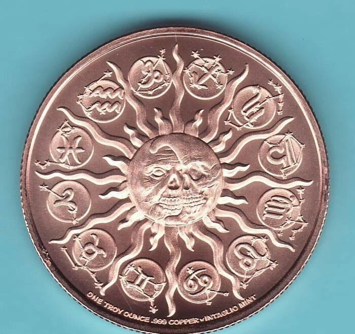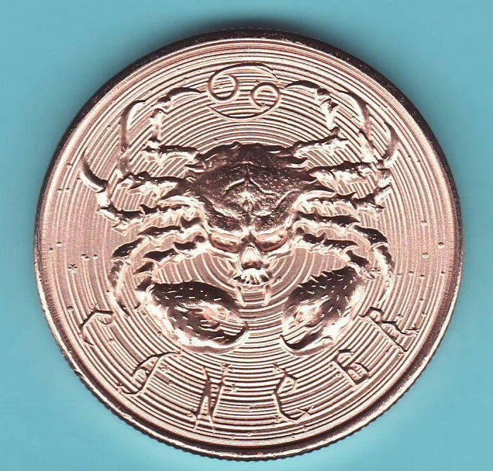 ZOMBIE ZODIAC SERIES This is a 1 oz. TROY .999 pure Copper Round CANCER June 22nd -- July 22nd ..These ZOMBIE ZODIAC coins have been made in Silver for a year or so now but NEVER in Copper...In fact, the LIMITED PRODUCTION on these is 40 as of 04/15/2022 and will NEVER be made again on a TROY oz copper. P&H is $4.75......Each 1 oz. copper coin will be shipped in a coin flip with an insert for labeling, email with any questions,..... Now with 500+ choices of copper rounds listed in my store..... THE LARGEST SELECTION ANYWHERE...
