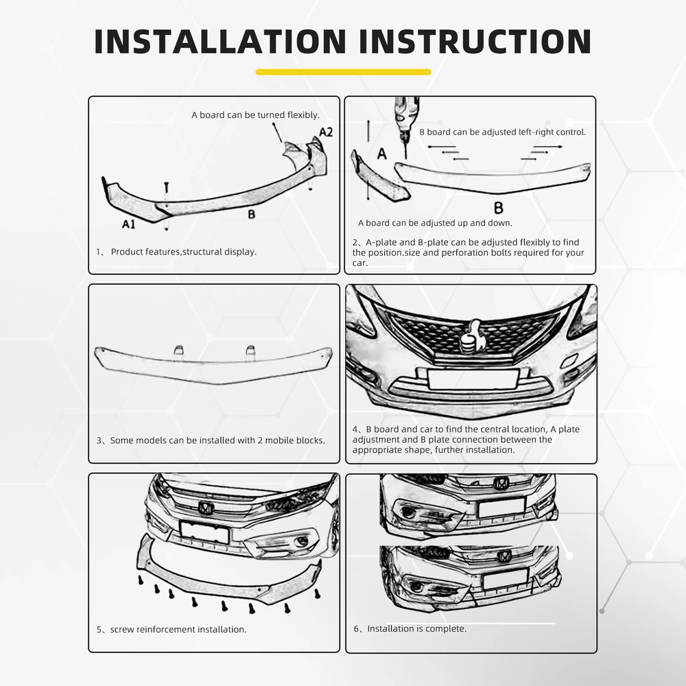 CARBON Front Bumper Lip Splitter Spoiler Side Skirts Body Kit for Dodge Charger Material: Polypropylene(PP) Features: Durable and Solid: Made of high quality polypropylene material, waterproof, rustproof, never fades and protects your car. Modern Design: This front bumper lip + Side Skirts set gives your car a sporty style, gives your car a unique look and makes your car an eye-catcher on the road. Easy Installation: Installation is simple and does not require complicated steps. Professional manufacturing, directly replace your old or broken one. Wide Fitment: Suitable for most Mazda, Subaru, VW, Audi, Benz, Ford, Honda, Toyota, LEXUS, Acura, etc.... Delivery contents: 4 + 6 pieces, 2 Mount Kit, 2 Strut Rods. Notice: For Front Splitter: The width of the car should be less than 195cm, the bottom of the front bumper should be flat enough, and the product is not equipped with the original front lip. For Side Skirts: These side skirts are suitable for vehicles with a wheelbase of less than 2.95 meters. The excess part can be cut off. If you don't know how to install it, please go to a professional modification store. Your order will be shipped within 1 business days ( Excluding Weekends and Public Holidays)after your payment clear. * We only ship out within US. Domestic Packages are shipped via Standard Delivery from our stock in Walton, KY, US. * Item will be delivered within 1 - 6 business days in US. We ship to Paypal confirmed address ONLY. Please make sure your address in PayPal is matched with your shipping address before you pay. * We do not offer in store pick up and return service. Regardless of response, buyer can return item within 30 days and get a full refund. Item must be returned in good condition in original packaging, not damaged, not stained, no cut.