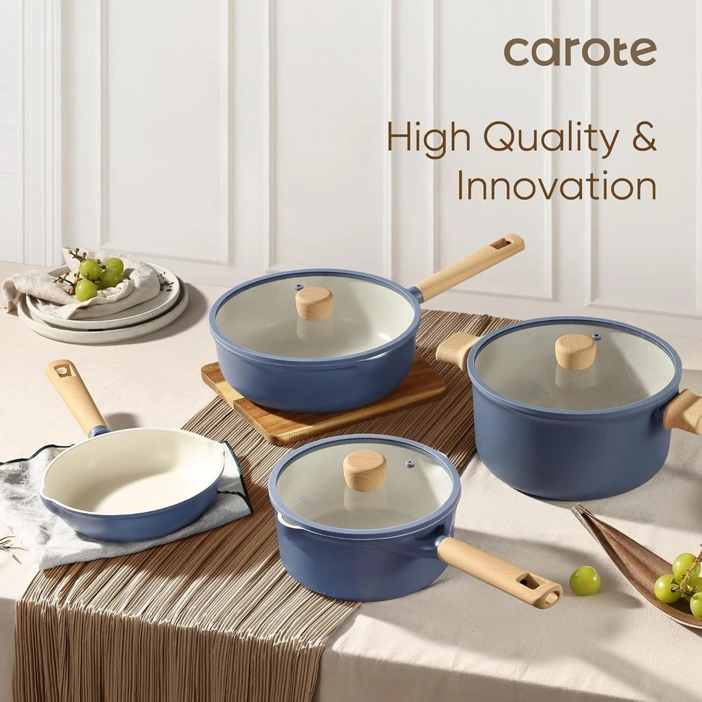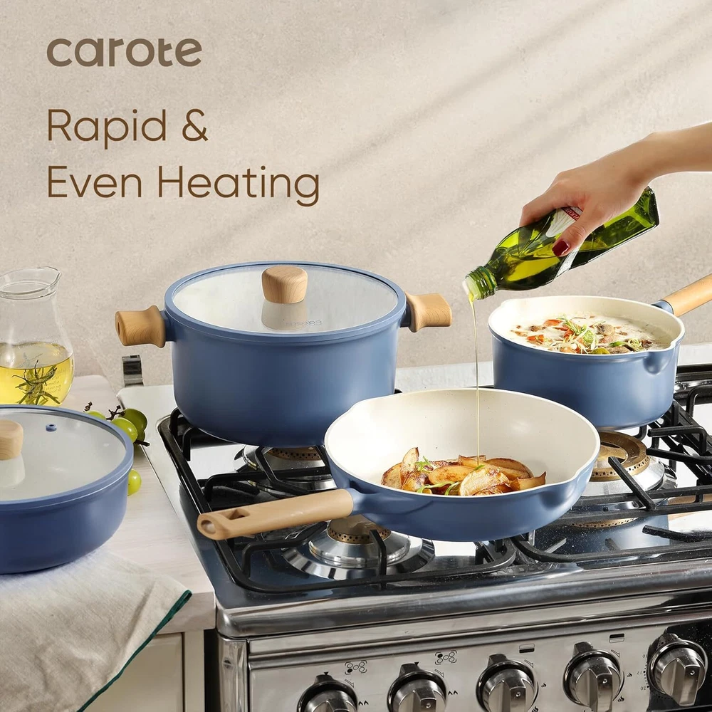 CAROTE 15Pcs Pots and Pans Set Non Stick, Kitchen Cookware Sets Nonstick, Blue, Cookware sets, Frying Pan and Pot Set, Kitchen Induction, Large Capacity Product Details Package Dimensions: 21.75 x 14.75 x 8.75 inches Item Weight: 18.66 pounds Item model number: A10247 Brand: CAROTE Is Dishwasher Safe: Yes Number of Pieces: 15 Is Oven Safe: No With Lid: Yes