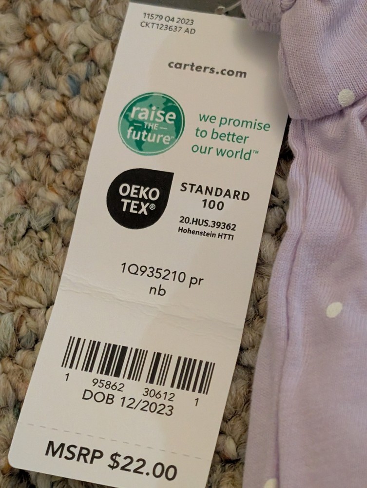 This cute and stylish romper from Carter's is perfect for your baby girl. The purple color and polka dot pattern make for a charming combination, while the sleeveless design and pullover closure ensure easy and comfortable wear. Whether you're heading to the beach or just lounging around, this romper is sure to keep your little one looking adorable! The set includes two pieces, a bodysuit and a bottom romper, both of which are machine washable for easy care. The easy-care and comfort features make this romper perfect for activewear or casual wear. Get ready for your baby girl to look super cute in this stylish and comfy romper! Free Shipping from Cincinnati, Ohio USA.
