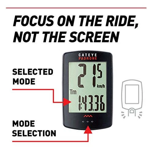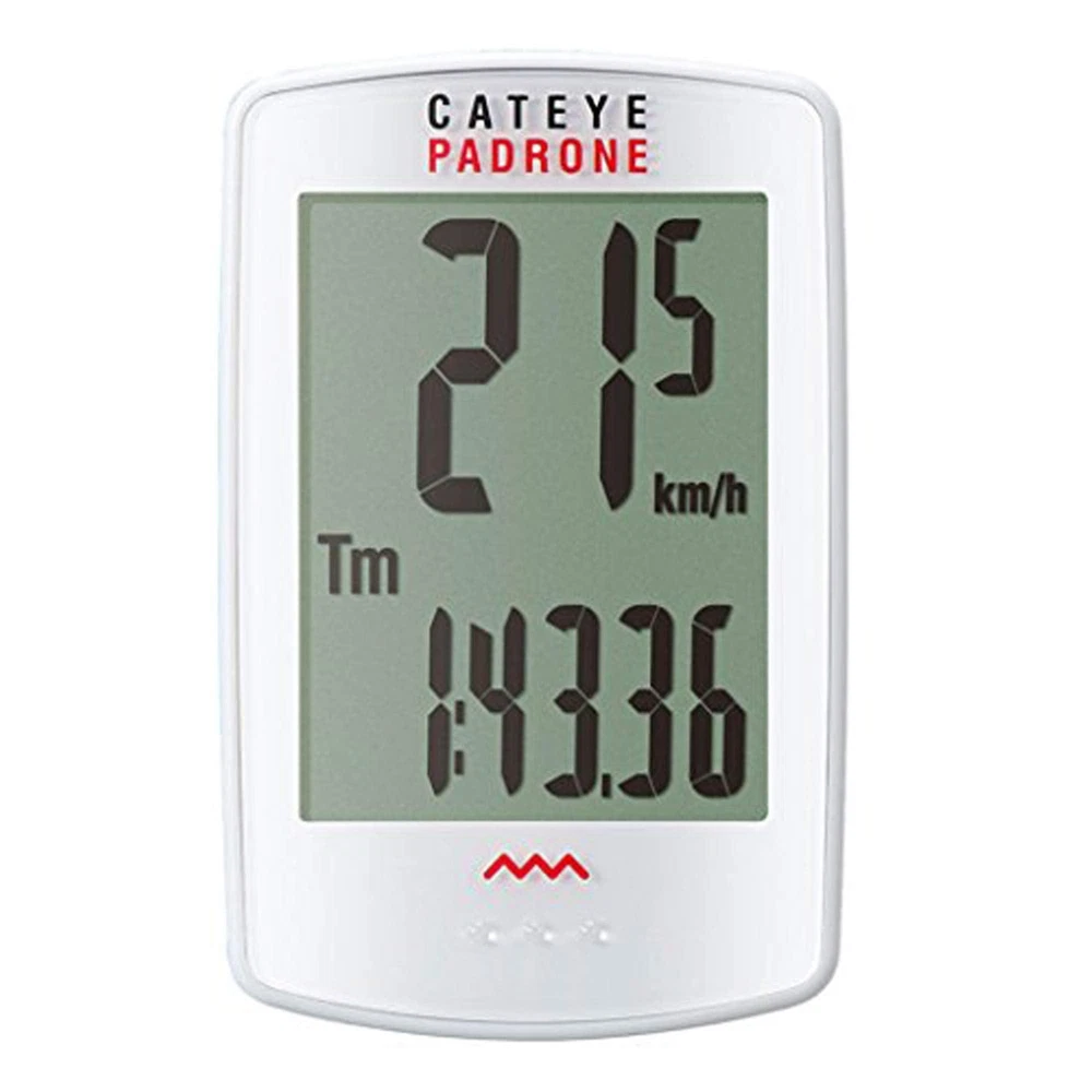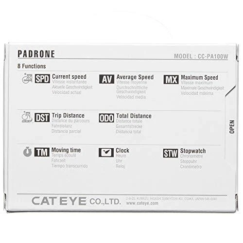 Brand: CATEYE Features: ALL YOUR FAVORITE STATS: Displays current, max, and average speed, total distance, trip distance, elapsed time, and clock. SAVE YOUR MILES: With the option to manually set the odometer, you don't have to start over every time you change the battery. FOCUS ON THE RIDE, NOT THE SCREEN: Don't let navigating menus or buttons get in the way of enjoying your ride. Simply press the base of the unit to toggle through functions. SECURE AND GO: With our FlexTight Bracket, you can easily mount, adjust, and move your computer by hand. Spend less time setting up your gear and more time on the road. DON'T SWEAT THE SMALL STOPS: Caught at a red light? Stopping for coffee? We've got you covered. Your CatEye computer knows when you've stopped and automatically stops counting time and averaging speed. Details: Developed from CatEye customer feedback, the padrone features the largest display available on the market today. From the downhill mountain biker to the farsighted cyclists, the padrone is ideal for anyone who wants to enjoy a squint-free ride and a fast, simple set-up. Binding: Sports