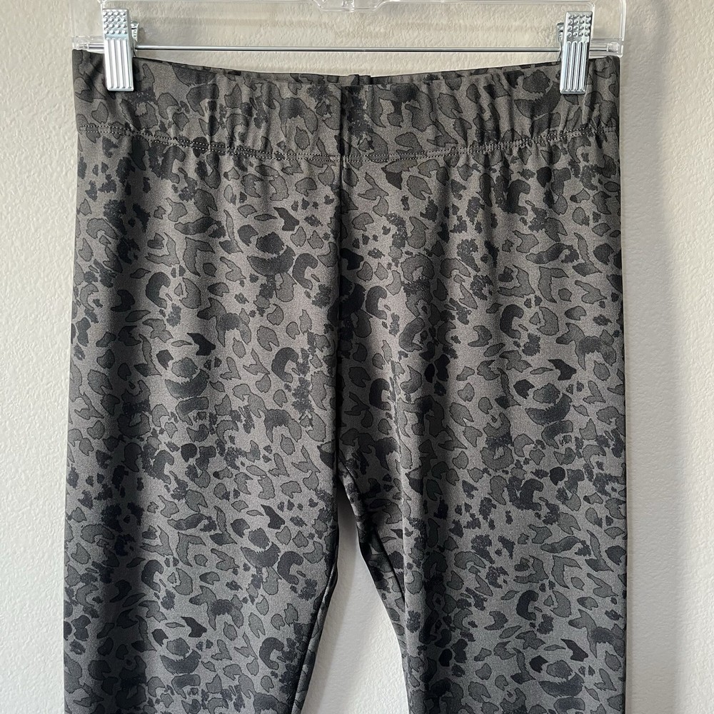 CAbi #3212 Tea Lounge Safari Leggings in a dark gray/black. Size small. Midrise. Elastic waistband. Stretch. Animal print. Skinny leg. Retailed for $99. Pre-owned, excellent condition. Mobwife, luxury, city, contemporary, travel. All measurements are approximate, not exact. Inseam: 29.5” Waist: 13.75” measured flat Rise: 9.25” Leg opening: 4” measured flat