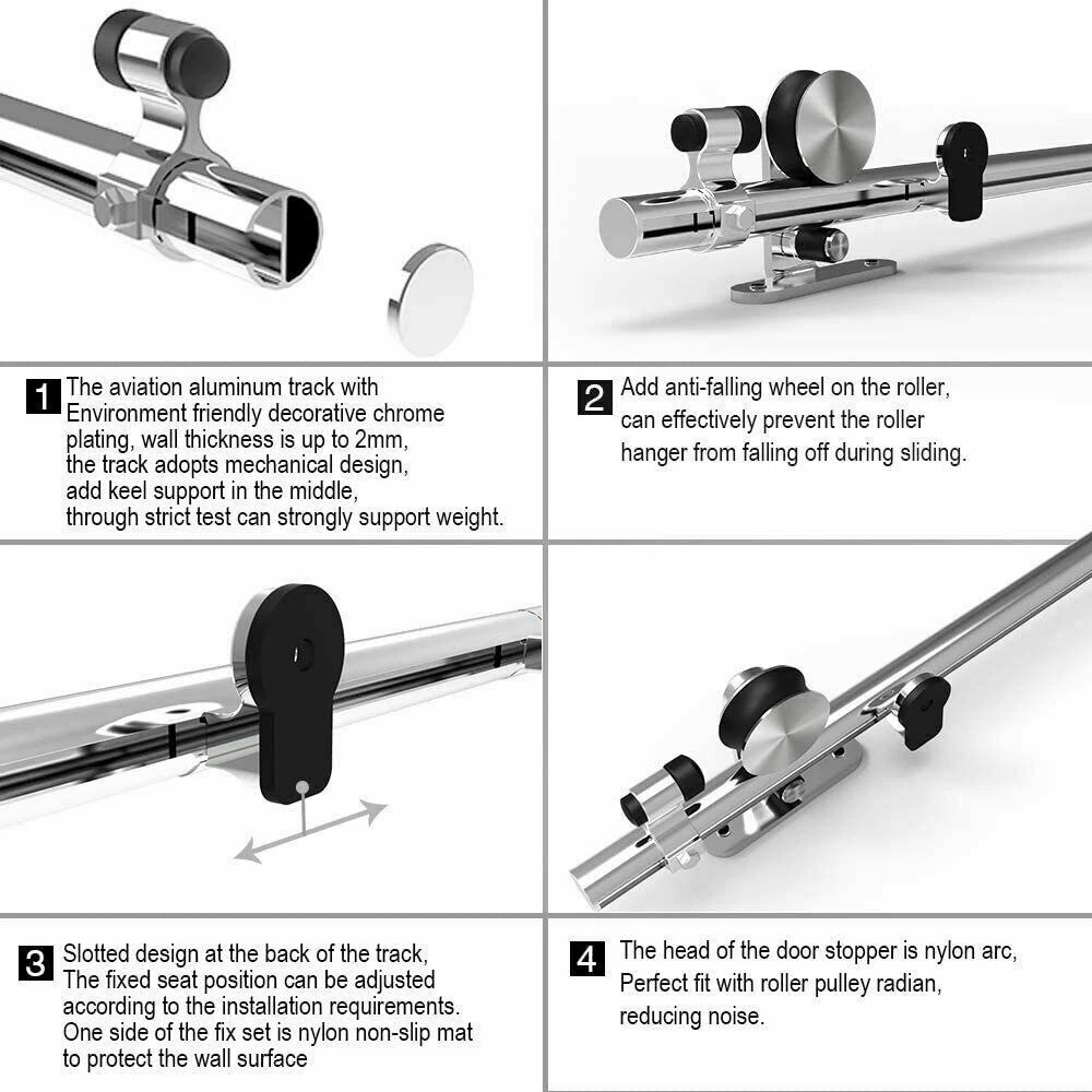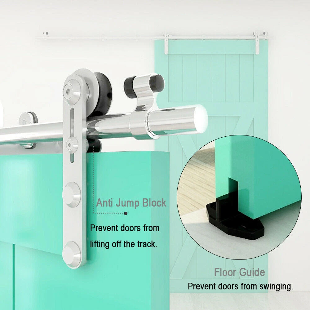 CCJH Sliding Door Hardware System Stainless Steel Duty Barn Door Kit Product Description Is your home furnished in retro style? Or do you prefer a more modern style? Are you struggling with the small space in your house where you can not install the sliding door? Do you like the decorative style of sliding doors? If you like it, choose our sliding door system CCJH. We offer a single door, double door and bypass double door. The traditional design elements make both the rustic and modern surroundings look simple and elegant, save space and are practical. Material: Track: Stainless steel. Roller material: Premium nylon. Maximum door weight capacity: Up to 330 lbs per roller pair. Suitable for sliding door thicknesses: 1.18''--1.57''. The Top Edge of the doors to the ceiling: The minimum distance is 4.3''. Special D esign : Carbon steel roller: The super load-bearing capacity of the inner nylon wheels does not wear the rail when rolling. Adjustment screw: The roller screws can be infinitely adjusted within the door thickness from 3 cm to 5 cm (1.18''-1.97'') in any size. Anti-Jumper: With the small round panes, your door cannot be lifted off the rail. Door stoppers: Unique spring design: Spring door stoppers play a buffer role and reduce impact noise when opening and closing the door. Wooden dowel: Insert the wooden dowel into the hole, the hole diameter will not increase, which will stabilize the nail in the wall and the whole system will run stably. Step-by-step instructions: Each step has been accurately measured in practice and detailed measurements written. For Single Door : 1) 2 x Rollers 2) Wall bracket set (1 rail hole needed 1 set) 3) 2 x Door Stopper 4) 4 x adjustable roller screws 5) 2 x anti-jump blocks 6) 1 x floor guide 7) Pre-drilled splicing rails For Double Door : 1) 4 x Rollers 2) Wall bracket set (1 rail hole needed 1 set) 3) 4 x Door Stopper 4) 8 x adjustable roller screws 5) 4 x anti-jump blocks 6) 2 x floor guide 7) Pre-drilled splicing rails How to choose the track length: The length of the rail should be twice as large as the door panel (Since your door is 2-foot wide, you will need a 4-foot hardware kit). Payment Policy Shipping Policy Returns Policy Payment Policy 1 . Our Store accept many of payment options, including credit cards, debit cards, Apple Pay, Google Pay and PayPal. 2.All major credit cards are accepted through secure payment processor PayPal. 3.Payment must be received within 7 business days of auction closing. 4.We ship to your eBay or Paypal address. Please make sure your eBay and Paypal address is correct before you pay. Shipping Policy Item will be shipped within 1 business day after full payment is received. You should receive item within 3-7 days. Email us if not receive items after 10 working days after full payment sent. Shipment may be influenced by the weather / custom /holidays and other uncertainties. If it is delayed, the item may reach some more days later than the estimate delivery date. But we will try our best to ensure the items reach soon. Returns Policy 1.We accept items return within 30 days from the date you receive the package. 2.Buyer must contact us to obtain a Return Authorization from our company. 3.Refund given as Money Back, once receiv ed the return item. Copyright © 2023 Dianxiaomi
