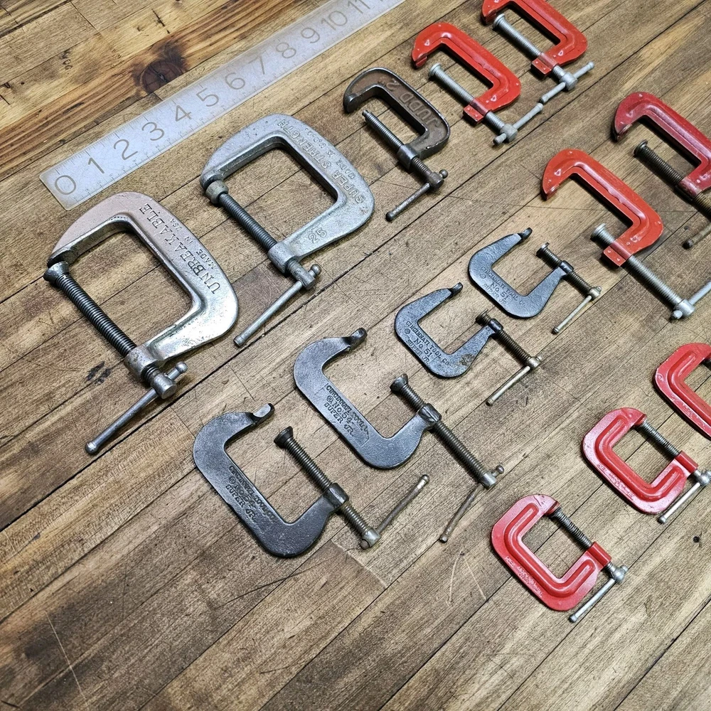 Excellent working condition and clean. A great set of clamps, including Cincinnatti clamps. Items usually will be received within 2 business days after the payment is made. Please review pictures as they offer more complete details on the items for bid. On some of my tool auctions, vintage items for bid have been cleaned for purposes of photo taking, though you may desire to clean them further or leave the patina. Any questions, please ask. While you're at it, please check out my other AFFORDABLY priced auctions. I do combine shipping, just message me. As always, thank you! ☆CHECK OUT THE LINK FOR MY OTHER AUCTIONS TO SEE SIMILAR ITEMS FOR BIDDING ☆☆☆ I GLADLY COMBINE SHIPPING SO YOU'LL SAVE MONEY! ☆Please review pictures as they offer more complete details on the items for bid. On some of my tool auctions, vintage items for bid have been cleaned for purposes of photo taking, though you may desire to clean them further or leave the patina. Any questions, please ask. While you're at it, please check out my other AFFORDABLY priced auctions. I do combine shipping, just message me. As always, thank you! ☆CHECK OUT THE LINK FOR MY OTHER AUCTIONS TO SEE SIMILAR ITEMS FOR BIDDING ☆☆☆ I GLADLY COMBINE SHIPPING SO YOU'LL SAVE MONEY! ☆