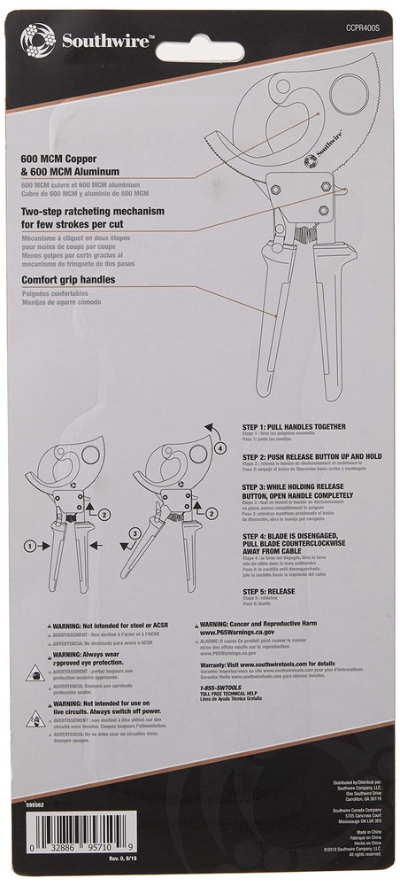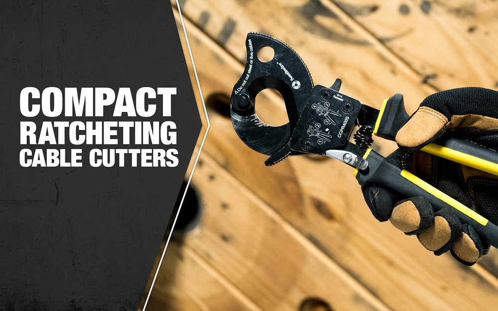 Durable Ratcheting Cable Cutters Perfect For Cutting Up To 600 Kcmil Copper And 600 Kcmil Aluminum Cables. Minimal Cable Distortion: Hardened Steel Blades Ensure Consistent Cuts And Long-Term Durability. Replaceable Blades Provide Long Lasting Cutting Of Copper And Aluminum Wire. Quick-Release Lever Opens Blade At Any Time During Operation. Extra Comfort Provided By Molded Grip For Stability And Leverage When Making Cuts. Ccpr400S, 600Mcm Compact Ratcheting Cable Cutter. DURABLE ratcheting cable cutters perfect for cutting up to 600 kcmil copper and 600 kcmil aluminum cables MINIMAL CABLE DISTORTION: Hardened steel blades ensure consistent cuts and long-term durability REPLACEABLE BLADES provide long lasting cutting of copper and aluminum wire QUICK-RELEASE lever opens blade at any time during operation EXTRA COMFORT provided by molded grip for stability and leverage when making cuts