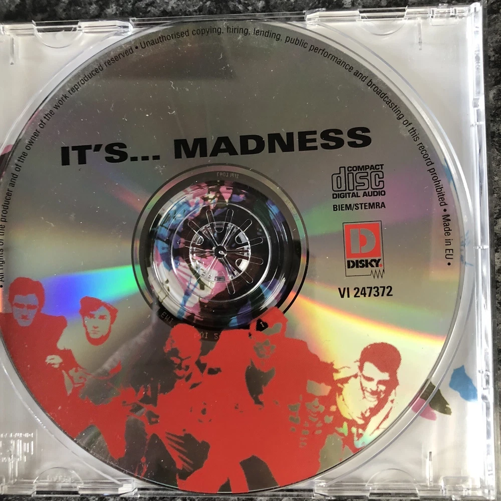 This CD album by Madness titled "It's...Madness" is a superb copy from 1999, featuring a compilation of studio recordings. The album showcases the unique style of the band, characterised by elements of punk, new wave, pop, rock, and contemporary Christian genres. The CD grading for this item is near mint (NM or M-) and it comes in a standard jewel case. Both the case and inlay are also in near mint condition. This album was released in 2000 and covers the band's hits from the 1980s and 1970s era. It has a total run time of 2869 seconds.