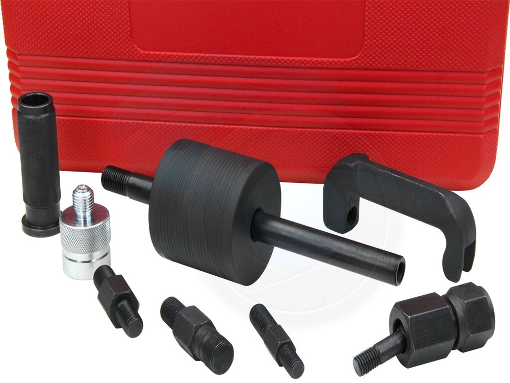CDI Common Rail Diesel Injector Extractor Puller Bosch Mercedes-Benz About Us Delivery Information Returns & Exchanges FaQ's Contact Us What our customers say? View feedback Got a Question for us? Contact Us Menu Tools Computer Accessories Household Items Tools Computer Accessories Household Items Free shipping to USA Fast & friendly customer service Contact us now with any Questions! Safe & easy payment through PayPal CDI Common Rail Diesel Injector Extractor Puller Bosch Mercedes-Benz USD 49.49 Model: DN-A1140 Brand: FOSN This CDI common-rail fuel injector puller is suitable for Bosch injectors built for BMW, Mercedes-Benz CDI engines, for example OM 611, 612, 613 etc. This set includes injector pulling claw and a slide hammer with various adapters. The claw is made to fit under the injector valve so it grabs the injector firmly while using a slide hammer impact force by hammering upwards. Features: This puller is made for CDI common-rail Bosch injectors Suitable for BMW, Mercedes-Benz CDI engines, for example OM 611, 612, 613 etc. Short shaft sliding hammer, can be used in tide space environment Includes a swivel ball joint attachment and internal external thread adapters Includes a convenient molded storage case Specifications: Model: DN-A1140 Type: CDI injector puller Sliding hammer overall length: 13.7 inches or 35cm Sliding hammer shaft length: 8.5 inches or 22cm Shaft handle length 2-7/8 inches or 74mm, 26mm in diameter with internal thread M14 x 1.5 Sliding hammer weight: 52oz or 1.5kg, 14mm bore Claw opening 13mm, length 4-1/4 inch or 110mm Claw threads M12 x 1.75 Ball joint swivel adapter with internal thread M14 x 1.5 Injector tension bolt with external threads M17 x 1.0 and M14 x 1.5 for swivel adapter Injector sleeve with internal threads M27 x 1.0 and male thread M14 x 1.5 for swivel adapter External thread M12 x 1.75 for pulling claw to external thread M10 x 1.5 for the sliding hammer shaft External thread M12 x 1.75 for pulling claw to external thread M14 x 1.5 for swivel adapter Plastic storage case Weight: 8Lbs or 3.63kg Package includes: 8pcs CDI common-rail injector extractor puller set Plastic storage case