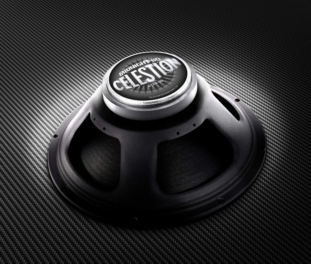 CELESTION Midnight 60 Guitar Speaker Specifications : Nominal diameter : 305mm / 12in || Nominal power rating : 60W || Rated impedance : 8Ω or 16Ω || Sensitivity : 96dB || Frequency range : 75-5000Hz || Resonance frequency, Fs : 75Hz || DC resistance, Re : 6.82Ω & 13.12Ω || Voice coil diameter : 1.75in / 44mm || Chassis type : Pressed steel || Magnet type : Ceramic || Magnet weight : 0.6kg / 20oz Mounting Information : Unit weight : 2.5kg / 5.5lb || Magnet structure diameter : 115mm / 4.5in || Mounting hole dimensions (mm) : 7.9mm || Mounting hole dimensions (in) : 0.31in || Mounting hole PCD (mm) : 297mm || Mounting hole PCD (in) : 11.7in || Number of mounting holes : 8 || Overall depth : 120mm / 4.7in || Cut-out diameter (mm) : 283mm || Cut-out diameter (in) : 11.1in The Midnight 60 continues Celestion’s tradition of delivering rich, classic British tone in innovative new ways, featuring the moving parts that were inspired by the V-Type design, but with a different magnet assembly which has the effect of shifting the tonal balance to give a sonic character more reminiscent of Celestion’s vintage G12L speaker. Whatever the genre, Midnight 60 provides an exhilarating sound in the classic Celestion style. Cleans are well balanced with just enough top end to make the high frequencies sparkle. Overdriven this speaker brings searing rock tones with plenty of low-end warmth and mid-band character.