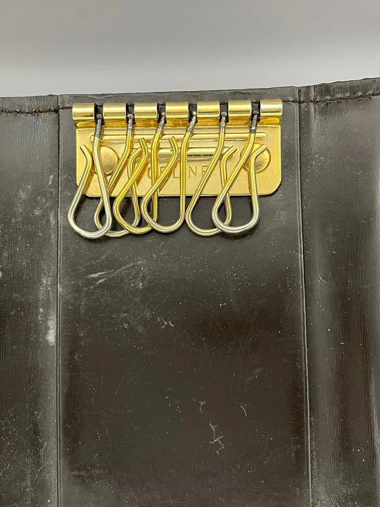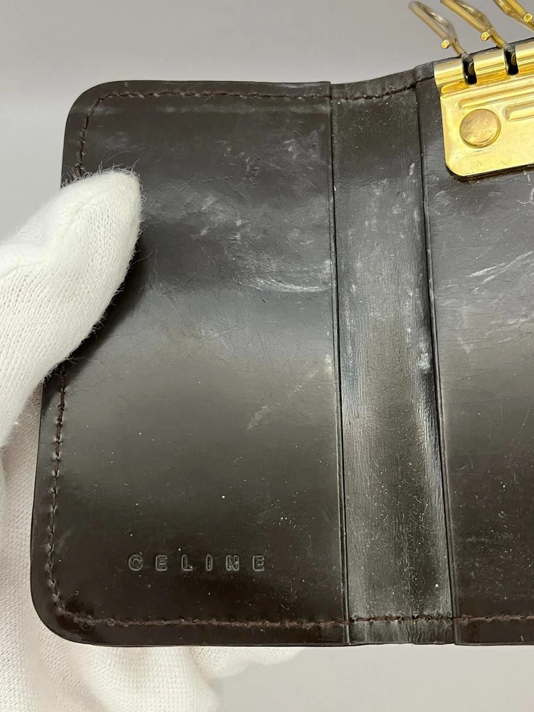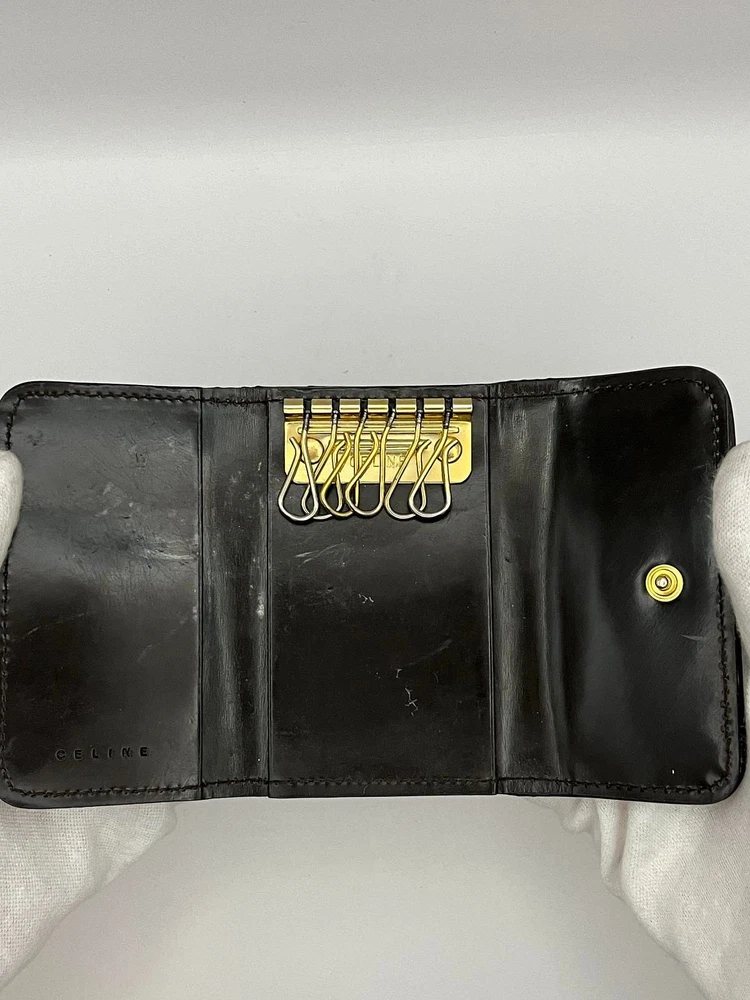 This key wallet is fantastic—compact yet holds six keys securely. The brown leather has a lovely worn-in look, giving it character. Despite minor signs of use, it's still in great shape. Shipping was fast with FedEx tracking, making the whole experience smooth. Perfect for keeping keys organized while adding a touch of Celine luxury!