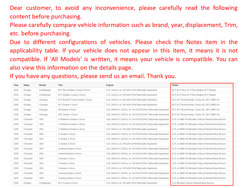 Product Description CF10729 Cabin Air Filter for Jeep Compass Patriot Ram 1500 Dodge Avenger Caliber Product Description Description: HENZIKON Air Cabin Filter CF10729 Can keep up to 99.9% of road dust and pollen particles from entering your vehicle to improve your driving comfort. Specification: Brand:HENZIKON Product Dimensions: 1.5"L x 1.6"W x 1.8"Th Item Weight: 0.2 Kilograms Material: Carbon Fiber Fitment Type: Direct Replacement Item model Number: CF10729 Manufacturer Part Number: CF10729 OEM Part Number: CF10729, 5058693AA, 5058 693AA, 24313, 5058381AA, C25869, 05058693AA, 5058 381AA, 24578, PA4373, AFC1328, 89313, CAF1845P Package Included: 1 X Carbon Fiber Notes: If you are not sure whether this item fits your car, please contact us for checking. Please send us the vehicle brand, year, vehicle, engine exhaust volume or VIN information, and we will quickly inquire for you About this item ⚙For Select Dodge Models - Chrysler Cirrus 2007-2010, Dodge Avenger 2008-2014, Caliber 2007-2012, Journey 2009-2019, Dodge Chrysler 200 2011-2014, Sebring 2007-2010, Jeep Compass 2007-2017, Patriot 2007-2017 📖Reference Number - CF10729, 5058693AA, 5058 693AA, 24313, 5058381AA, C25869, 05058693AA, 5058 381AA, 24578, PA4373, AFC1328, 89313, CAF1845P Compatible Model and Year List: Make Model Year Engine Size Material Note Chrysler 200 2011-2014 All Engine Carbon Sebring 2007-2010 All Engine Carbon May not be standard equipment Dodge Avenger 2008-2014 All Engine Carbon Caliber 2007-2011 All Engine Carbon Caliber 2012 L4 2.0L Carbon Journey 2009-2020 All Engine Carbon Jeep Compass 2007-2017 All Engine Carbon Except 2017 2.4L SOHC Patriot 2007-2017 All Engine Carbon Ram 1500 2011-2012 All Engine Carbon Only if Kit 68052292AA is installed 1500 2014-2015 V6 3.0L Carbon Only if Kit 68052292AA is installed 1500 2013 V8 4.7L Carbon Only if Kit 68052292AA is installed 1500 2013-2015 V8 5.7L Carbon Only if Kit 68052292AA is installed 2500 2011-2015 All Engine Carbon Only if Kit 68052292AA is installed 3500 2011-2015 All Engine Carbon Only if Kit 68052292AA is installed 4500 2011-2015 All Engine Carbon Only if Kit 68052292AA is installed 5500 2011-2015 All Engine Carbon Only if Kit 68052292AA is installed ★ Please kindly send us the brand, model, and year of your vehicle after purchase to verify the installation status! ★ Warm reminder: This product may expose you to chemicals such as arsenic, chromium (hexavalent compounds), nickel, and cobalt, which are known to cause cancer, birth defects, or other reproductive damage in California. For more information, please visit www.____ P65Warnings.ca.gov. About US At HENZIKON, we offer exceptional and fast service to ensure you get the right parts as quick as possible. If you have any questions regarding out parts and services, please ask us a question. You may also send us an email through eBay at the top right corner of this page. We focus on creating the best product. Only high end advanced optical design are adopted. Delivery Details We have decided to ship quickly and free of charge through courier services such as FedEx/UPS/USPS/Amazon. The estimated delivery time is 1-2 working days. Most products ordered before 4:00 pm (Beijing time) from Monday to Friday can be shipped on the same day, while orders placed after 4:00 pm (Beijing time) will be shipped on the next working day. Usually takes 1-5 working days to arrive. For remote areas, it may take longer. Return Policy ★All orders require immediate payment. ★The warranty period is 60 days. ★Your purchase is protected and a refund is guaranteed. ★If you have any questions, we will do our best to provide you with assistance. ★As long as you return the purchased item within 60 days after the invoice date and the item is not damaged or installed, we are happy to accept a full refund. The returned products must be placed in a complete box, and we do not allow partial package returns. ★If the order is incorrect, disliked, or changed, the seller will pay for shipping. ★If the transportation is damaged or the manufacturer has defects, the seller shall pay for the postage. Service Guaranteed Your purchase is protected, with money back guaranteed. Any concern, we will try our best to help you. Contact Us Business Hours (excluding holidays): Monday to Friday: 9:00 am - 6:00 pm (Beijing Time) powered by On Jan 21, 2025 at 01:39:30 PST, seller added the following information: