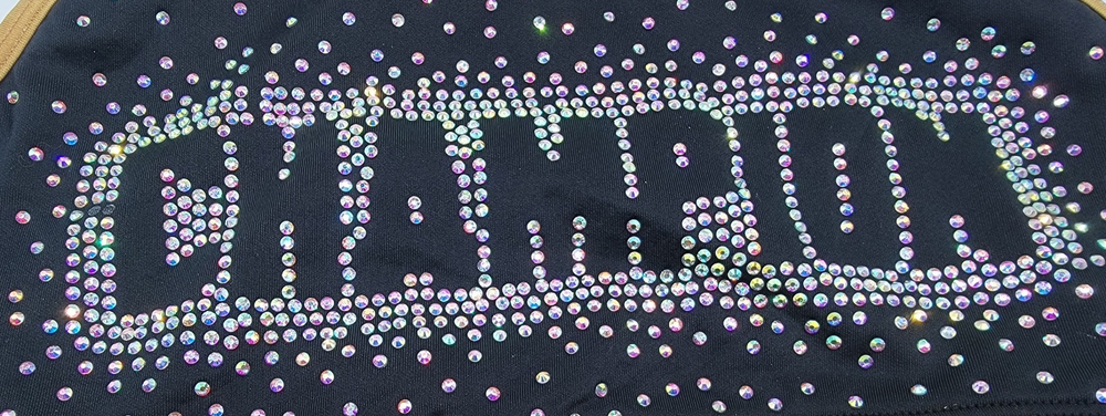 This RAD sports bra appears in excellent pre-owned condition. It appears to be missing 2 rhinestones. No other noted imperfections. CHAMPION CHEER women's cheerleading dance sports bra black gold rhinestone BLING!