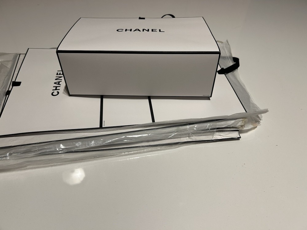 Elevate your gifting experience with the Authentic Chanel Gift Bag, perfect for any occasion. This medium-sized tote is crafted from high-quality white paper, exuding elegance and sophistication. Its sleek design features the iconic Chanel branding in raised lettering, adding a touch of luxury to your presents. Whether you're celebrating a birthday, anniversary, or simply want to add a special touch to your package, this gift bag ensures your treasures are presented with style. It's a practical and chic choice for women who appreciate the finer details in all aspects of their lives. Gift bags are still in their original packaging from well known, high-end department store, unfolded and separated by tissue paper.