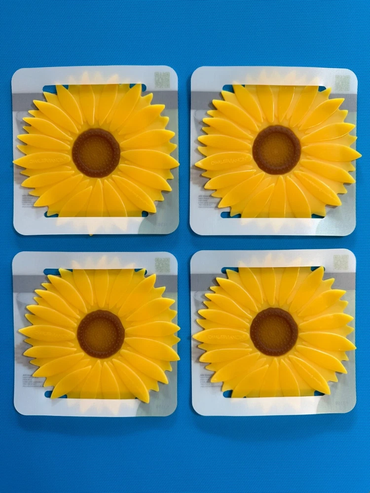 CHARLES VIANCIN Silicone Drink Coaster ~ Sunflower π»π»π»π»π» The first impression that strikes you is their beauty: like the lid designs that these are a part of, these silicone coasters are lovely works of art, βInspired by Natureβ in the words of their designer, Charles Viancin. But they are so much more: approximately 3mm thick, they perform the βlift off the surfaceβ function very well, while insulating the glass from the surface of your furniture or countertop. They donβt absorb, but they have an oh-so-slightly raised edge that contains the condensation that runs off your glass, so it wonβt make a watermark on your table. The variations in the surface eliminate fears of clinging. And the extra bonus is that these coasters create a non-slip surface on your serving tray, so you can carry a full tray of filled glasses without fear of slippage. Finally, coasters make a great host gift, especially when traveling: small, lightweight, lovely, and useful. In short, beautiful design with excellent functionality β¦ a very Cool Tool! FACTS: BPA Free Silicone Dishwasher Safe Temperature Range -40F/-40C - 428F/220C PET 1 Do NOT: use over a flame, wash with abrasives, or cut with a sharp cutting utensils 4.5β diameter Shipping for the first coaster $5.95 and each additional $1.00