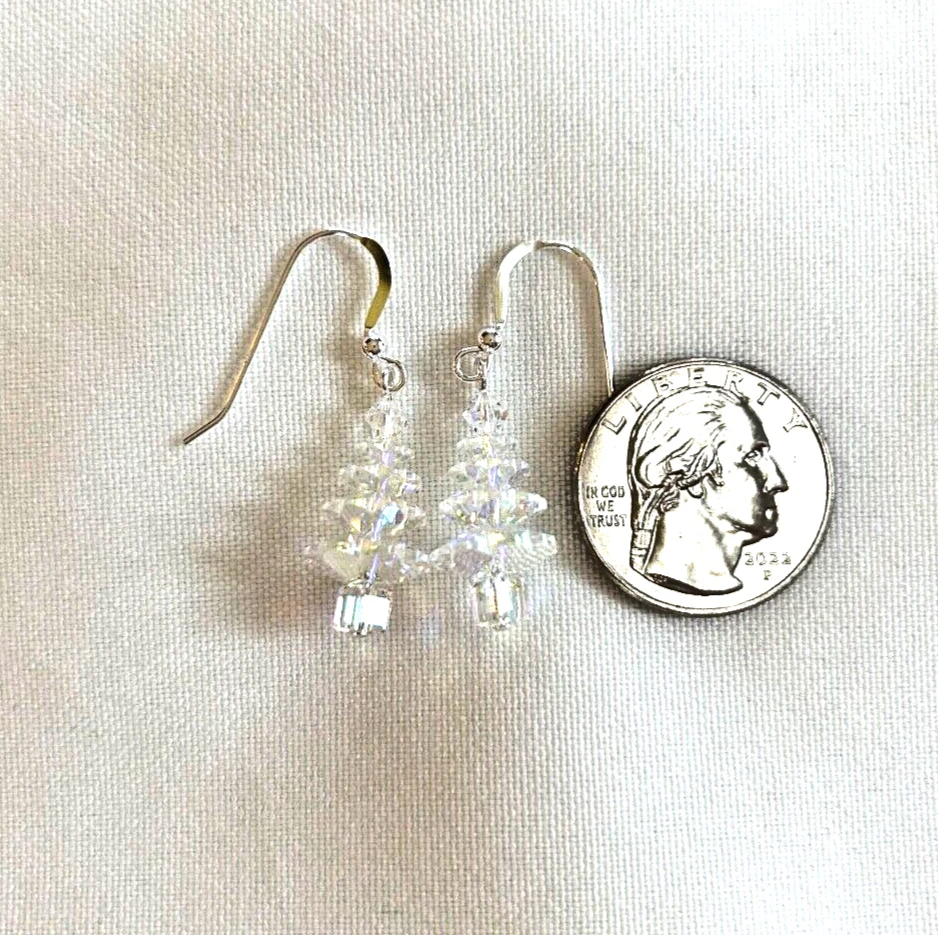 SET OF CHRISTMAS TREE EARRINGS AND NECKLACE Each new tree dangle in earrings and necklace consist of 6 pieces Swarovski Crystals in Crystal AB beads. The tree is made with 6mm, 8mm, 10mm and 12mm marguerite Swarovski Crystal beads. The tree is topped with a 4mm crystal AB bicone. The base is a 4mm crystal AB cube. The earrings are attached to Sterling Silver french earwires. The entire length of each earring is about 1.5 inches. The necklace is on a silver colored ball chain and is about 18" long. These can be made with Gold-filled headpins and ear wires. FREE SHIPPING AND HANDLING ON THIS ITEM!!! Visit my store for matching Swarovski Crystal bracelets and other Sterling Silver jewelry. I also carry Swarovski Crystal loose beads in 4mm, 5mm, 6mm, 8mm and 10mm sizes and multiple colors and mixes.