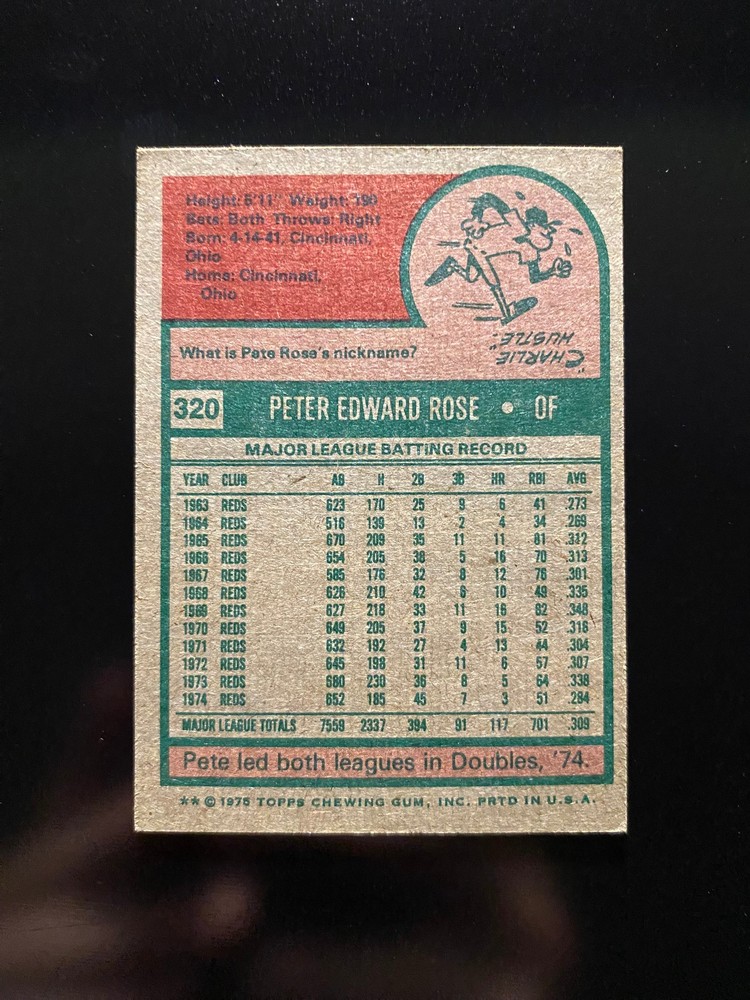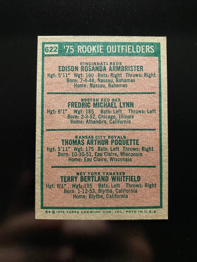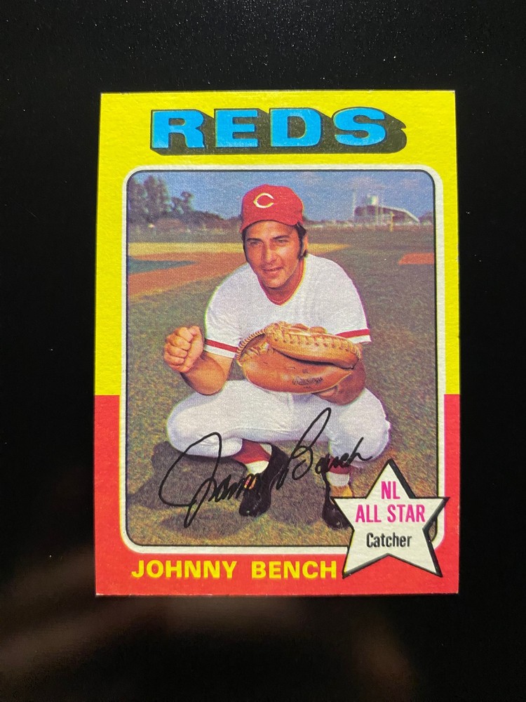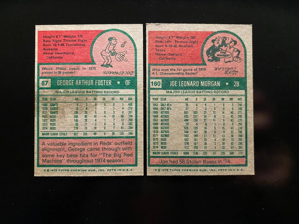 This Cincinnati Reds 1975 Topps World Series Champion Team Set consists of 31 baseball trading cards featuring iconic players such as Pete Rose, Johnny Bench, and Joe Morgan. This set from Topps manufactured in 1975 is a must-have for fans of Major League Baseball and the Cincinnati Reds. The set includes rookie cards of Fred Lynn (w/Ed Armbrister+) and Rawly Eastwick, as well as other notable players from the team like Ken Griffey,George Foster,Tony Perez and Dave Conception. These vintage cards capture a significant era in baseball history and are a valuable collectible for any fan of the sport.