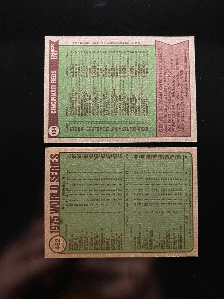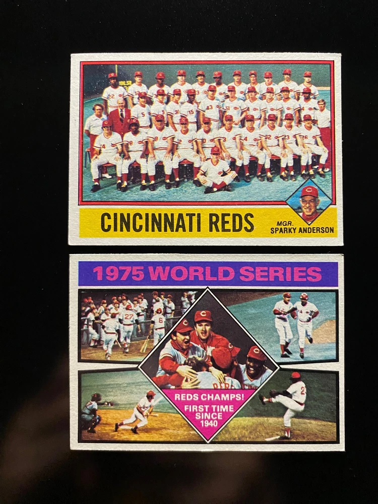 The Cincinnati Reds 1976 Topps Team Set includes 34 baseball trading cards featuring notable players such as Pete Rose, Johnny Bench, and Joe Morgan. These 1975 & 1976 World Series Champions are one of the most legendary teams in baseball history. Manufactured by Topps in 1976, this set captures the star athletes from the Cincinnati Reds team during that time period. With players like Cesar Geronimo, Dave Concepcion, and Ken Griffey, this collection is a must-have for fans of Major League Baseball and the Cincinnati Reds franchise.