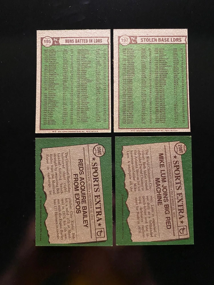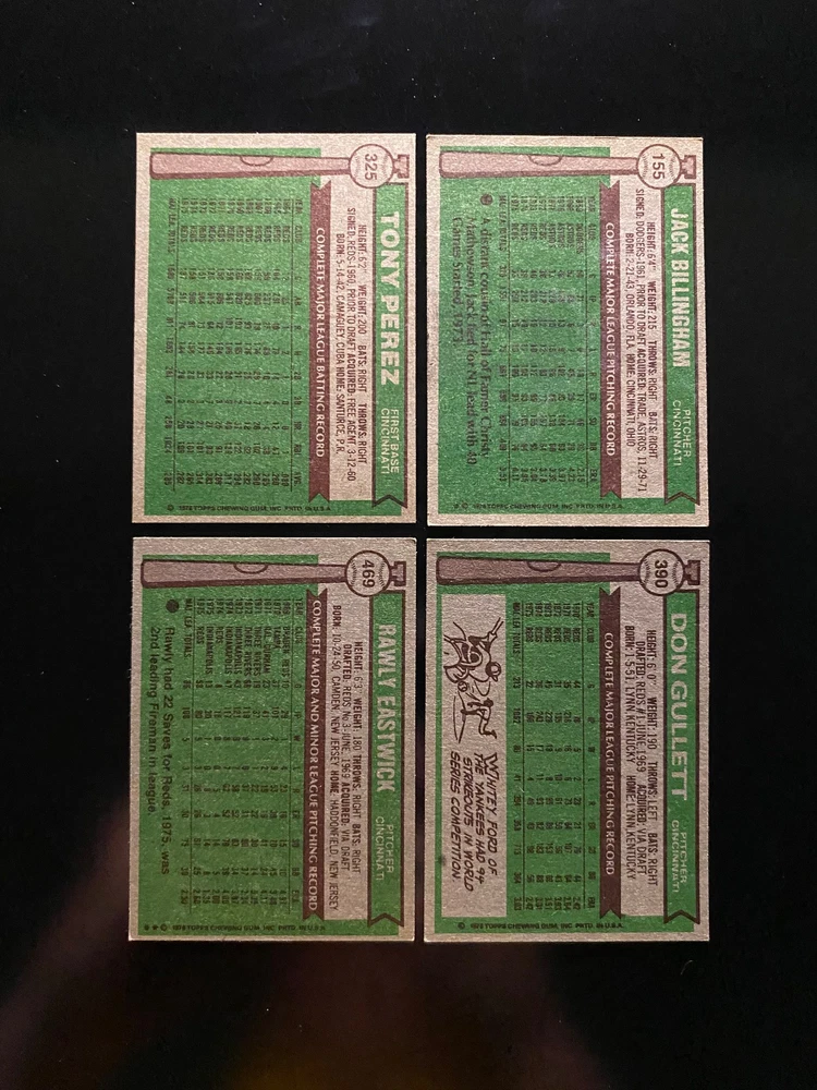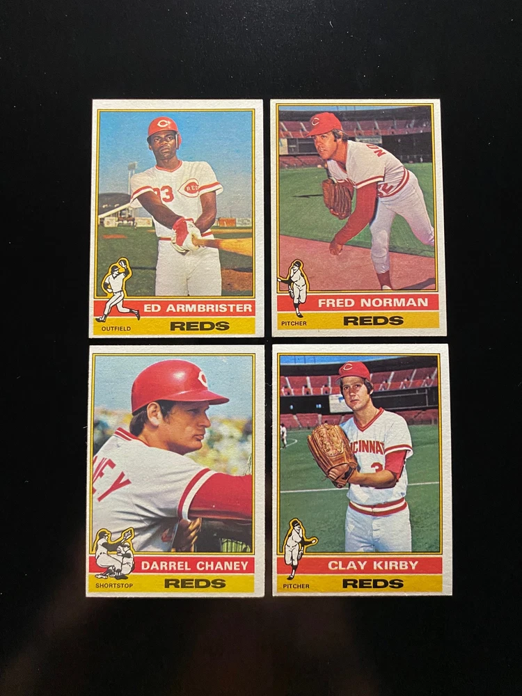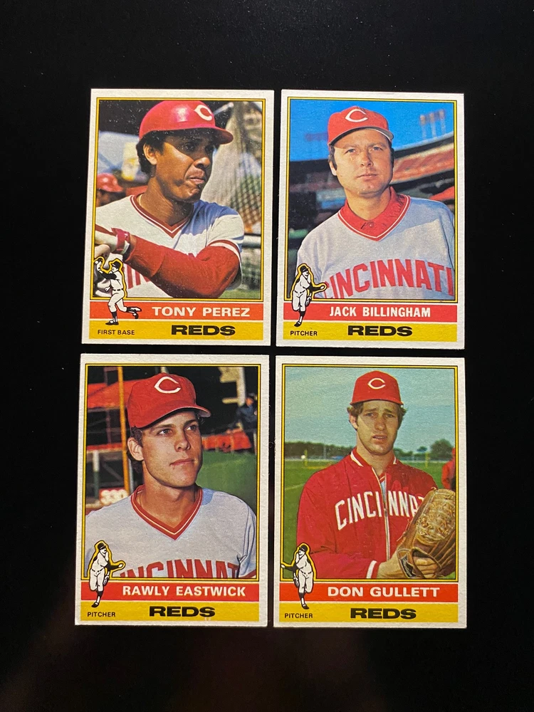 League: Major League (MLB) Year Manufactured: 1976 Team: Cincinnati Reds Type: Sports Trading Card Sport: Baseball Set: 1976 Topps Cincinnati Reds Country of Origin: United States Player/Athlete: Bob Bailey, Clay Carroll, Dave Concepcion, Don Gullett, George Foster, Jack Billingham, Joe Morgan, Johnny Bench, Ken Griffey, Mike Lum, Pat Zachry, Pete Rose, Rawly Eastwick, Ron Guidry, Sparky Anderson, Tony Perez, Santo Alcala, Dan Driessen, Cesar Geronimo Number of Cards: 34 Manufacturer: Topps