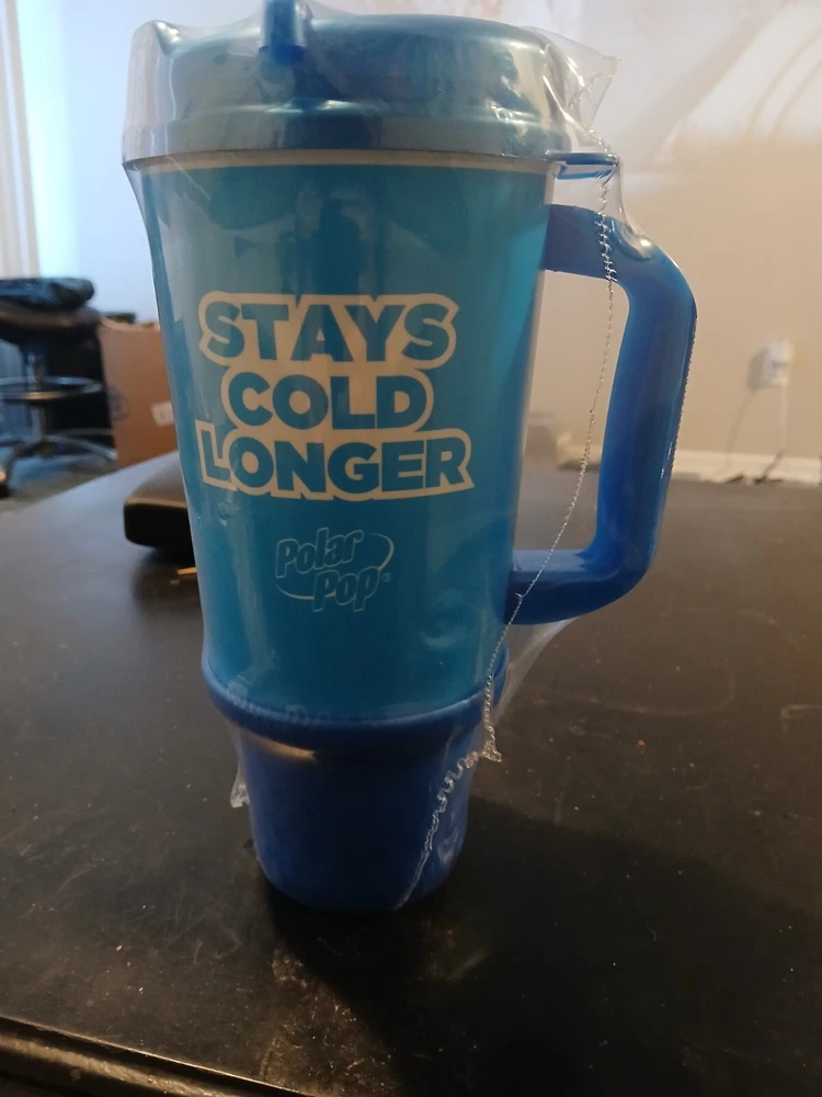 Sip in style with the CIRCLE K Polar Pop Travel Mug Cup, a 32 Oz marvel by Whirley Drink Works. This vibrant blue jug, adorned with a playful circles pattern, is a perfect companion for your hot or cold beverages on the go. It's crafted from durable plastic, ensuring longevity and ease of use.The travel mug features a convenient drink-through lid, allowing for a seamless drinking experience, and is decorated with a charming handle for easy carrying. Designed for versatility, it caters to kids, teens, and adults alike. Celebrate your love for Whirley Drink Works and enjoy your favorite drinks with this thematic, yet functional, travel accessory.
