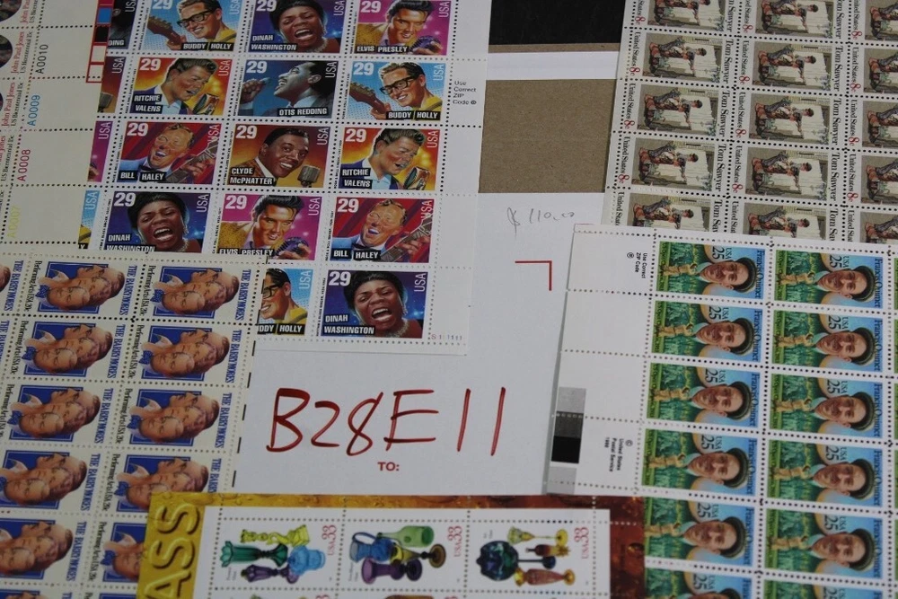 Stamp Description: ( Guarantee full refund if not as described ) Enticing Mint NH OG U.S. Sheets Stamps Collection ( Face Value$110.00 ( For the International buyers Only: Please combine more items to save shipping, For example Medium Flat rate Box( size 12 inchx14"x3.5") costs about $85, It can fit 2-3 regular binders , Large flat rate box ( Size :12 Inchx12"x6") costs about $95, it can fit 3-5 regular binders ) Please bidding on what is shown and examine the images for centering, perfs, color, and any obvious fault. If the description is unclear or questionable, please contact us prior to bidding. Please visit our store CKStamps For single stamp Scott CV over $450, if the buyer wishes to send it for identification and result is not as described, we will cover the $5 identification fee. Please note we don't cover certification and shipping fee. (Detail) We combine your purchase within 4 weeks period. APS Member #216955 For Shipping and Payment Information, please Click Here. Please do not leave negative, neutral feedback or open ebay case. If you are not satisfied with your purchase, please email us. We will do our best to solve the problem. Happy Bidding! Powered by SixBit's eCommerce Solution