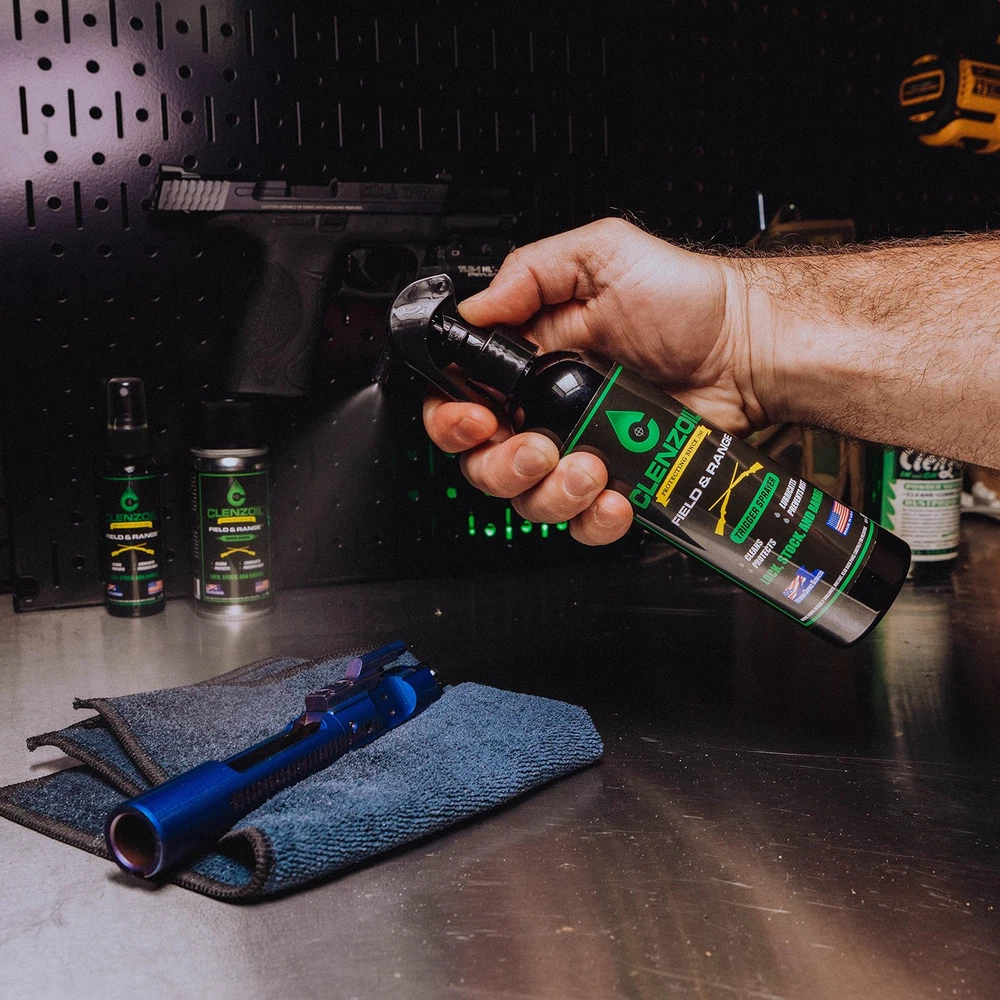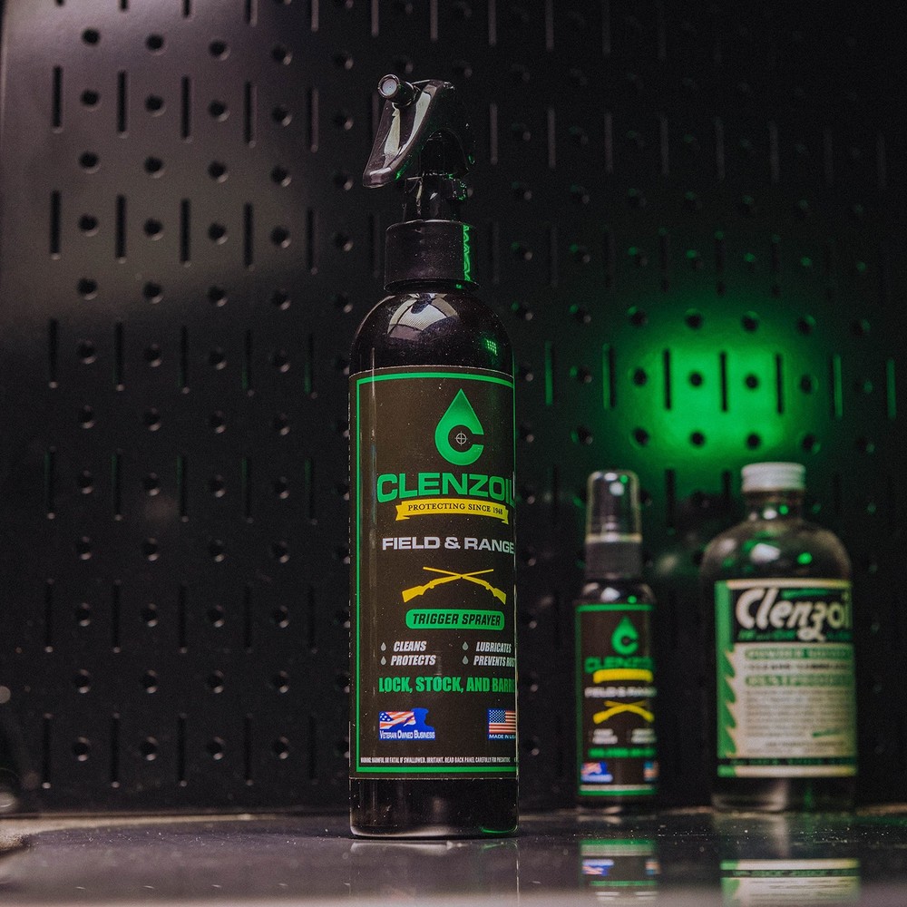 Field & Range Gun Oil: The Field & Range Trigger Sprayer Bottle CLP delivers a versatile one-step cleaner, lubricant, and rust preventative for lock, stock, and barrel Advanced gun cleaner effectively removes oils, dirt, copper, and lead; delivers a thin, non-greasy coating Safe for Gun Cleaning: gun lubrication nourishes, preserves, and protects wood and leather components, making it ideal for use on wood stocks, grips, leather holsters, scabbards, and slings Easy Use: Spray trigger makes this gun cleaner easy to use; use as a gun bore cleaner, scrubber oil lubricant, and rust preventative inside and out All-American & Veteran Owned: Veteran-founded and veteran-owned, is proud to be an All-American brand