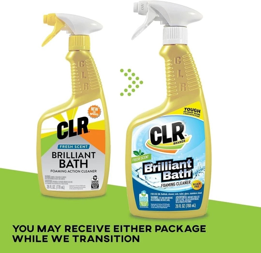 The CLR Brilliant Bath Bathroom & Kitchen Cleaner is a powerful and convenient spray cleaner specifically designed for bathroom and kitchen surfaces. With a fresh scent and all-purpose cleaning capabilities, this 26 oz cleaner comes in a pack of two, making it easy to tackle multiple cleaning tasks throughout your home. Made in the United States by the trusted brand CLR, this personalized cleaner spray is a must-have for anyone looking to keep their bathroom and kitchen sparkling clean.