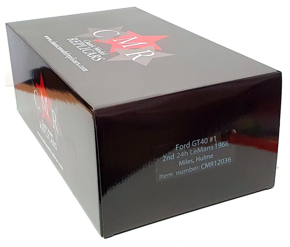 Listing Template Welcome to The Official rmtoysltd eBay Store ! Add to Favourites Home New Arrivals Ending Soon Feedback Contact Us CATEGORIES. Others Browse All Categories Safe & Secure CMR 1/12 Scale CMR12036 - Ford GT40 MkII - 2nd 24h Le Mans 1966 #1 Miles/Hulme 1/12 Scale Resin Model by CMR. The MODEL is in MINT condition. The BOX is in MINT condition. (DIRTY VERSION) SEE IMAGES FOR BEST DESCRIPTION AND GRADING CONDITIONS. DIRTY VERSION Product Details Product Details Scale 1/12 Material Resin Brand CMR EAN 7427265111914 Additional Info DIRTY VERSION GRADING CONDITIONS. MINT - The item is in perfect condition. NEAR MINT - Almost perfect, any imperfections will be extremely minor. EXCELLENT - The item will have had very careful use, with only small imperfections. GOOD - The item will have had more use, showing obvious imperfections. FAIR - The item will have heavy signs of wear, showing major imperfections. SPARES or REPAIR - The item will be in a poor condition. PAYMENT SHIPPING RETURNS ABOUT US Our preferred method of payment is Paypal. Any questions please ask! Thanks. WORLDWIDE MAIL-ORDER SPECIALISTS. Shipping WORLDWIDE is FREE OF CHARGE We ship from our warehouse is the UK. We ship worldwide everyday using a Tracked / Signed For service. Over 30 years of experience shipping collectible models worldwide - you can trust our service. Any questions, please ask. Thanks for looking ! We hope you are completely satisfied with your purchase. In the unlikely event that there is a problem / fault with the item we will happily provide you with a refund (excluding returns postage). R.M.Toys Ltd is a family lead company with over 50 years worth of experience specialising in high quality collectable models & worldwide delivery. We have continued to expand and develop as the retail market and technology has evolved and we are in no doubt we will need to continue with that trend so we hope we have been able to showcase our service and provide you, our customer, with everything you have required. Our aim is to ensure no matter what the model, we will provide an excellent service experience. To us, this means great availability, excellent customer service as well as quick & secure delivery, to anywhere across the world. All that is left to say is Thank You for taking the time to read our page and using our company to assist with your collection and gift needs - every order placed is gratefully received and as important to us as the next. Kind Regards The RM Toys Team Sign up to our Newsletter Click here to Subscribe to our Newsletter. Get the all latest News,Updates and Special Offers about OUR STORE. Subscribe Now Useful Links New Arrivals Ending Soon Feedback Contact Us About US R.M.Toys Ltd is a family lead company with over 50 years worth of experience specialising in high quality collectable models & worldwide delivery. We have continued to expand and develop as the retail market and technology has evolved and we are in no doubt we will need to continue with that trend so we hope we have been able to showcase our service and provide you, our customer, with everything you have required. Our aim is to ensure no matter what the model, we will provide an excellent service experience. To us, this means great availability, excellent customer service as well as quick & secure delivery, to anywhere across the world. All that is left to say is Thank You for taking the time to read our page and using our company to assist with your collection and gift needs - every order placed is gratefully received and as important to us as the next. Kind Regards The RM Toys Team .