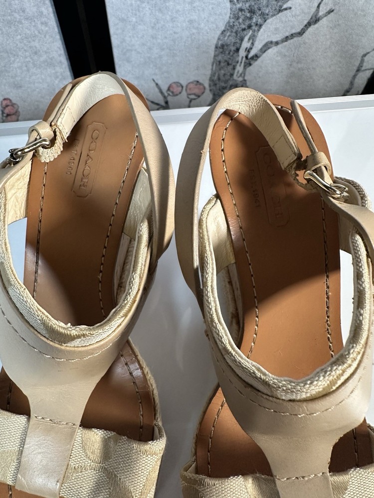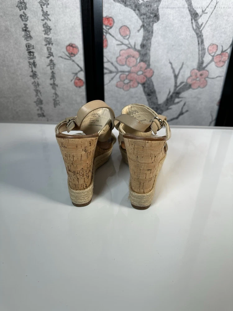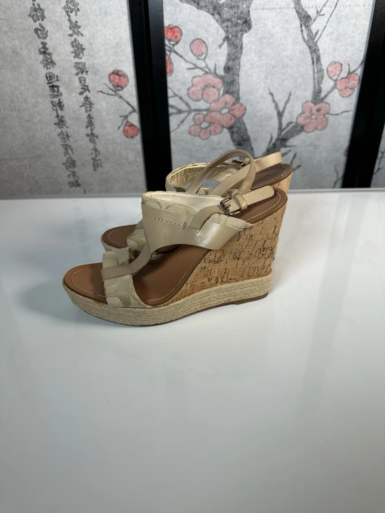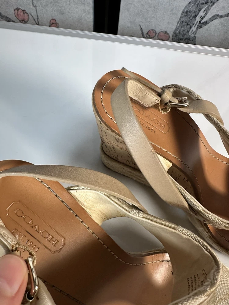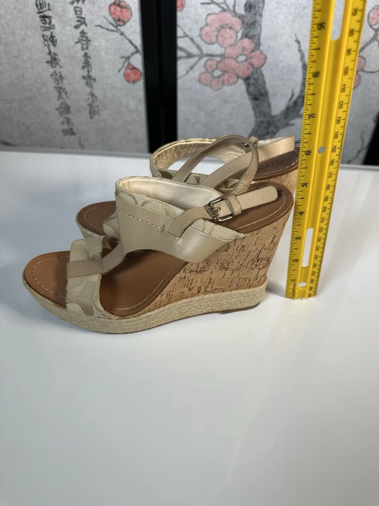 COACH Leather Tan Beachwood Cork Wedge Ankle Strap Sandals Sz 7.5 still in GREAT SHAPE!! Gently pre-loved. Makes your legs look amazing and they are quite comfortable.