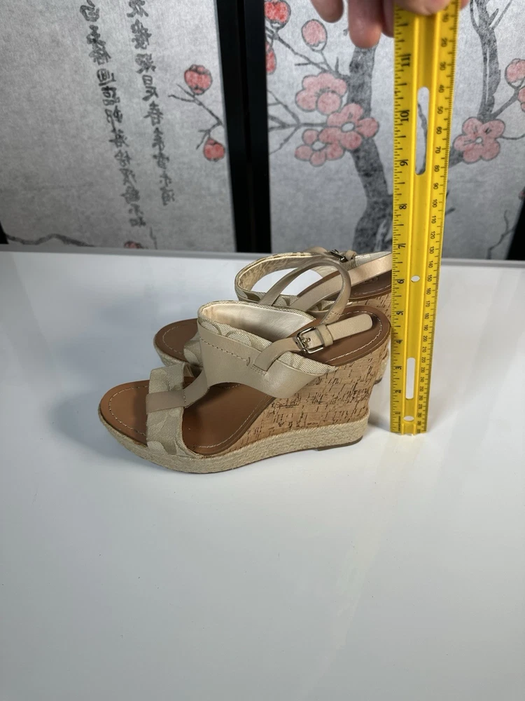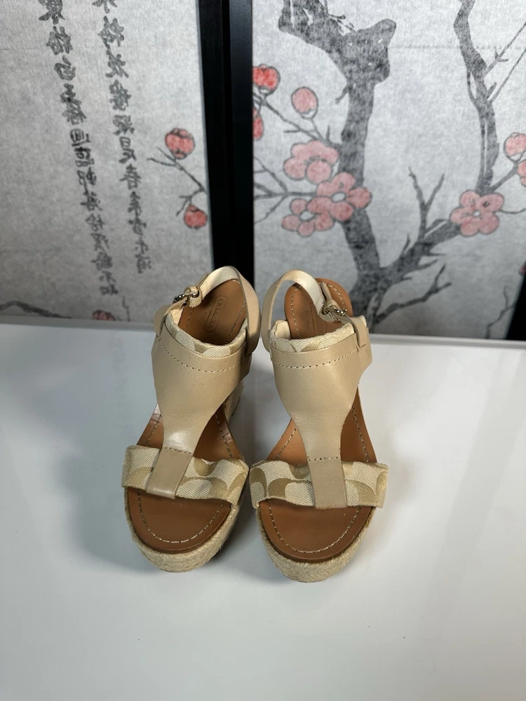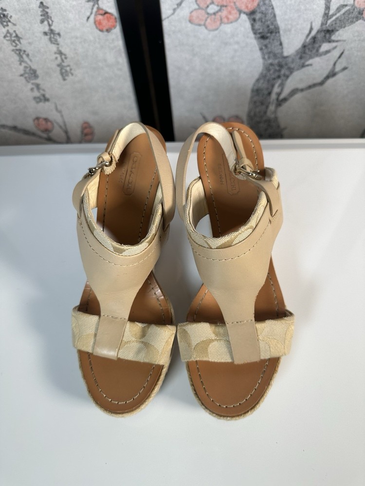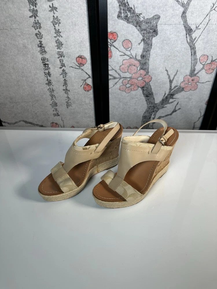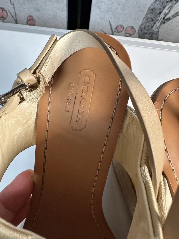 COACH Leather Tan Beachwood Cork Wedge Ankle Strap Sandals Sz 7.5 still in GREAT SHAPE!! Gently pre-loved. Makes your legs look amazing and they are quite comfortable.