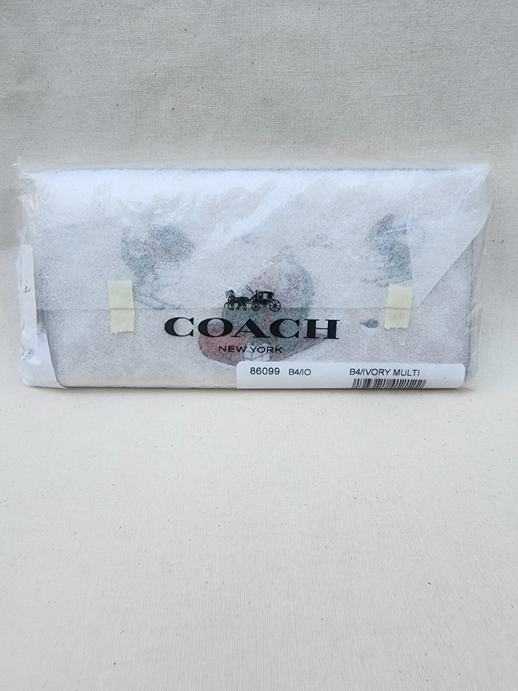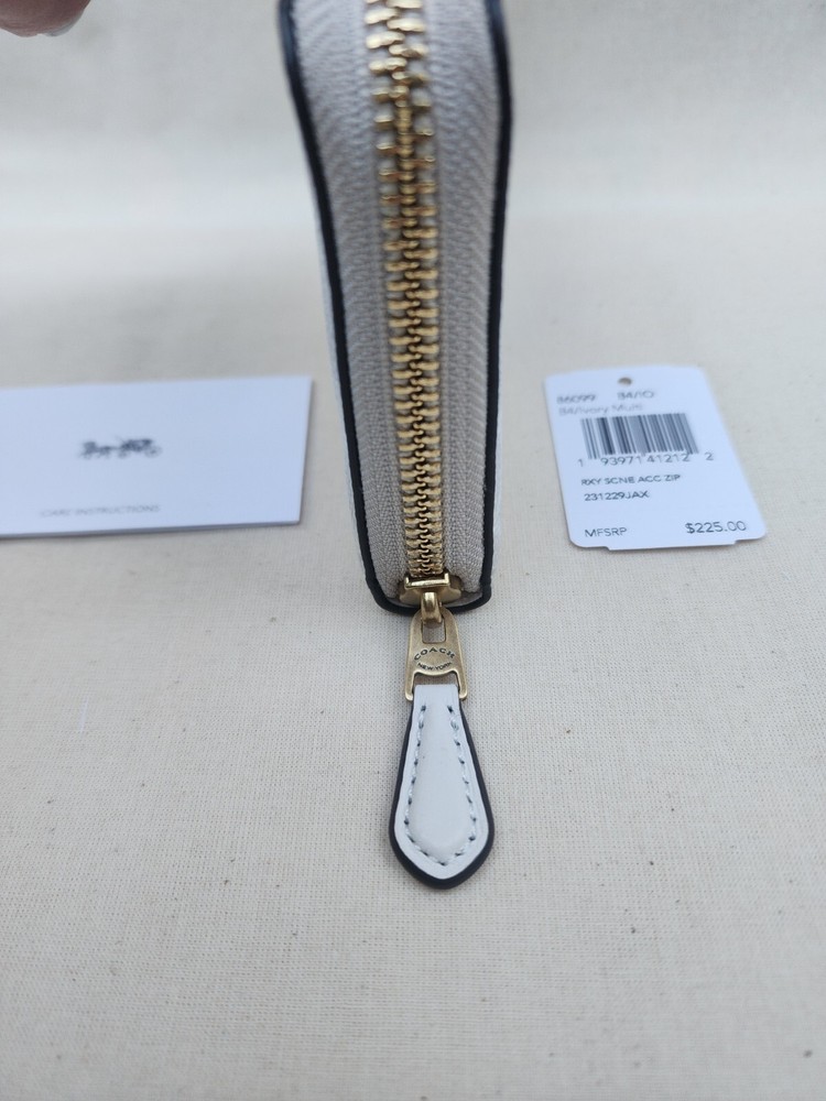 100% AUTHENTIC COACH ACCORDION ZIP WALLET IN SIGNATURE CANVAS WITH 🦖 REXY🦖 (COACH 86099) BRASS/IVORY MULTI COACH STYLE #86099 SIGNATURE COATED CANVAS, TWELVE CREDIT CARD SLOTS, FULL-LENGTH BILL COMPARTMENTS, ZIP COIN POCKET, ZIP AROUND CLOSURE 7 1/2"(L) X 4"(H) X 3/4" (W) FITS ALL PHONE SIZES UP TO AN iPHONE X AND SAMSUNG S7 EDGE STYLE NO. 86099 COACH MSRP:$225.00