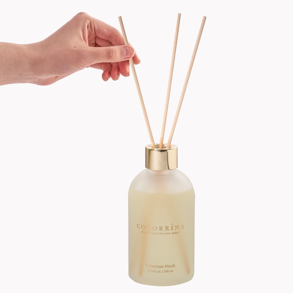 Scent: Fir Eucalyptus. The green air from nature is as fresh as a breeze. The bright and powerful eucalyptus leaves and fir fragrance are refreshing, giving people an association of sterilization, safe and healthy. Long-lasting fragrance: Enjoy the refreshing scent of fresh flowers in your home for an extended period, as the COCORRÍNA Flower Reed Diffuser is designed to slowly release the fragrance without overwhelming the space. Easy to use: Simply place the reed sticks into the bottle, and they will effortlessly draw the fragrance up, releasing it gently into the room. No need for any plugs or batteries. Versatile placement: The compact size of the COCORRINA New Flower Reed Diffuser allows you to place it on various surfaces, such as shelves, coffee tables, or bathroom countertops, bringing a touch of freshness wherever you desire. Ideal Gifts: The reed diffuser makes a thoughtful and elegant gift for birthdays, housewarmings, anniversaries, or any special occasion, allowing your loved ones to indulge in a luxurious and aromatic experience at home.