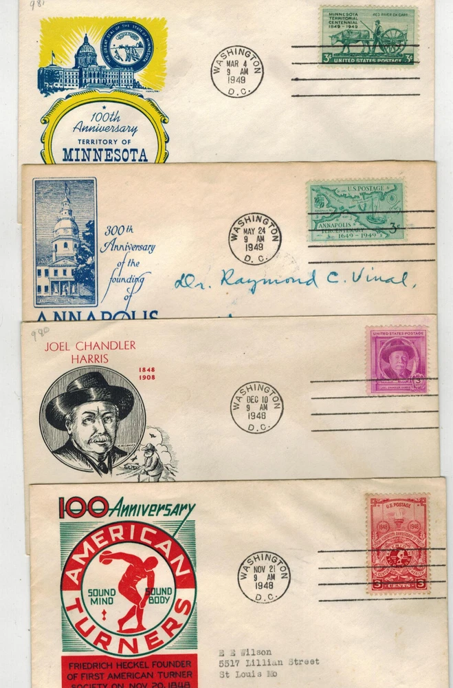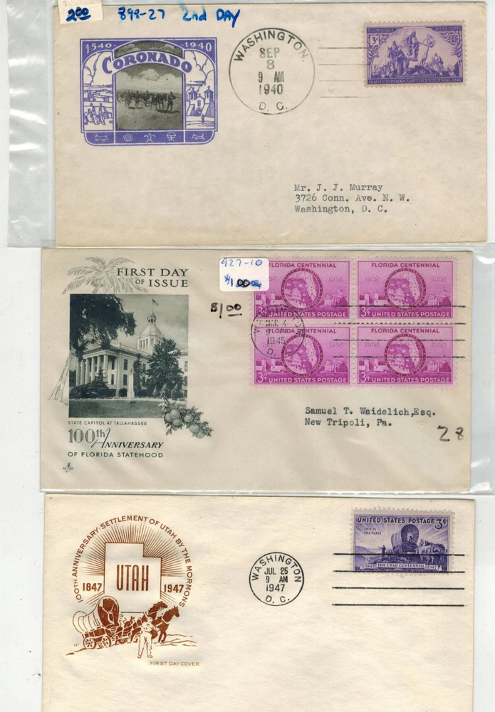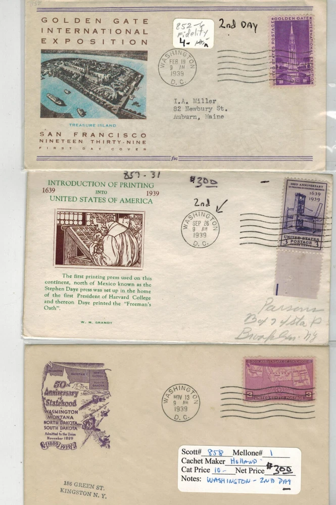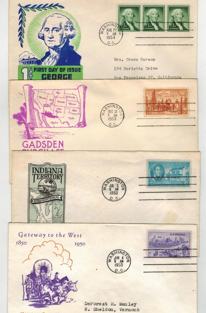 NICE COLLECTION OF WASHINGTON D.C. CANCELLED FIRST DAY COVERS. THESE WERE VERY POPULAR IN THE 1930s TO 1950s...................Usually have at least 4500 items in my Online Store! First Day Covers and Historical Event items. Lots of World War 2 Patriotic cachets etc Whits Covers, 34 Red Cedar Lane, Shelburne VT 05482 ......Any questions about forms of payment accepted, let me know. .....IF YOU PURCHASE MULTIPLE ITEMS, please combine into 1 Paypal payment or Email me for an updated combined invoice to get proper reduced Shipping/Handling Fees!.........FOREIGN BUYERS MAY be required to pay Customs Fees on larger $ Shipments or Packages. Check with your Post Office before purchasing! Any questions, please Email me through Ebay .......Thanks, Whit