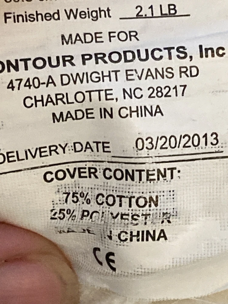 My husband's old CONTOUR PRODUCTS 5 Inch CPAP Pillow Memory Foam Washable Cover Used He tried it for a while with the CPAP and then went back to a regular pillow. Pillow itself is in good condition. Cover is off white with some yellowed stains that did not come out despite soaking the pillow cover in oxy clean and then sending through washing machine. See photos for details.